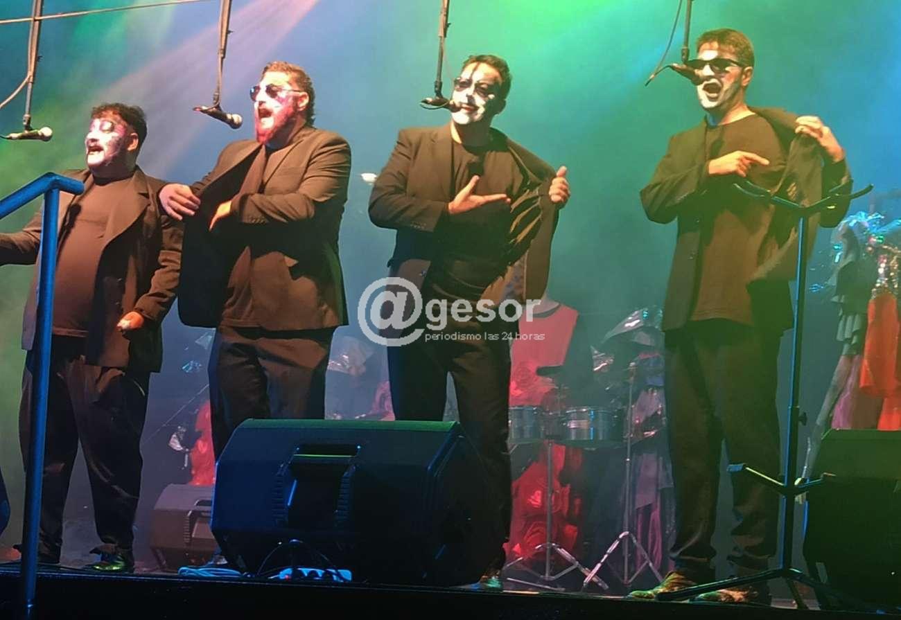 Logra una mejor comunicación con el público en el cuplé de "Los custodios" y por allí hasta alguna risa arranca a la concurrencia, pero lo esencial es el canto que a lo largo de su actuación es lo que más se destaca, al igual que la musicalidad y por supuesto varias voces individuales resaltando especialmente en solos que realizan en la parte final tanto Alexander Silva como Alejandro Garrasino que le dan realce con esas históricas voces murgueras.