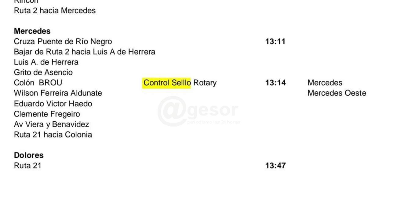 Colón BROU (Control por sello de Rotary Mercedes y Mercedes Oeste) 13.14 horas