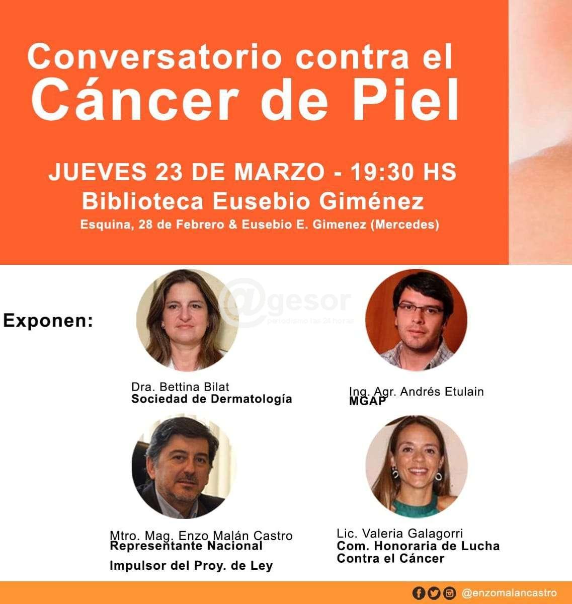 Este Jueves 23 de marzo, a las 19:30 horas se realizará un Conversatorio contra el Cáncer de Piel. La actividad se realizará en Biblioteca "Eusebio Giménez" – Mercedes.