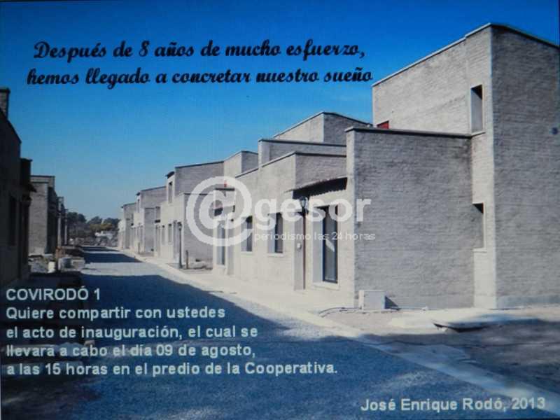 Agrega: "COVIRODO 1 Quiere compartir con ustedes el acto de inauguración, el cual se llevará a cabo el 9 de agosto, a las 15.00 horas en el predio de la cooperativa", en José E. Rodó.