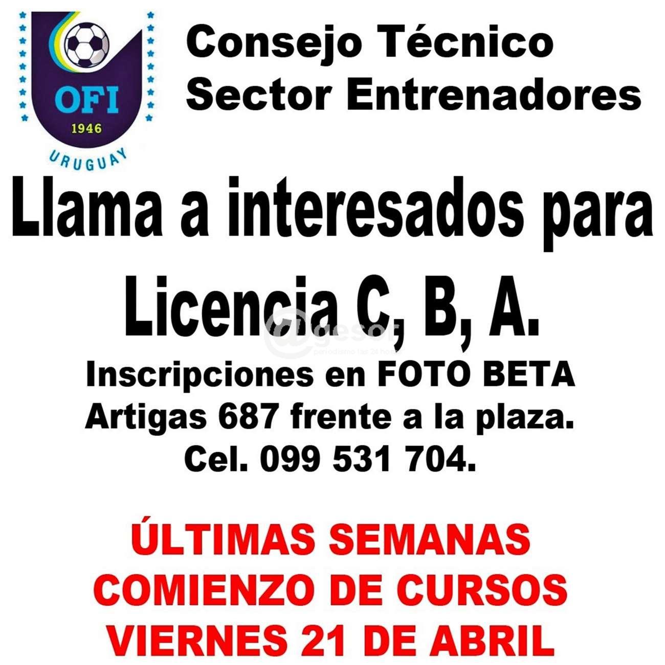 El Consejo Técnico Sector Entrenadores de la OFI (Organización del Fútbol del interior) está llamando a inscripciones, últimos días, para obtener las licencias como entrenador en las categorías C, B, A.
