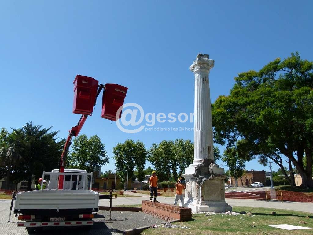 En esta semana se procederá al retiro de la “Columna de la Libertad” situada en plaza Rivera, de la ciudad de Mercedes, y que resultó con daños irreversibles por el rayo que impactó la estructura el 26 de agosto del año 2020.