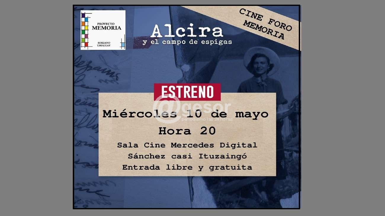 La Comisión Memoria, Justicia y Contra la Impunidad de Soriano continúa con su ciclo de Cine foro. Será el miércoles 10 de mayo a las 20 horas, con la proyección del documental Alcira y el campo de espigas.