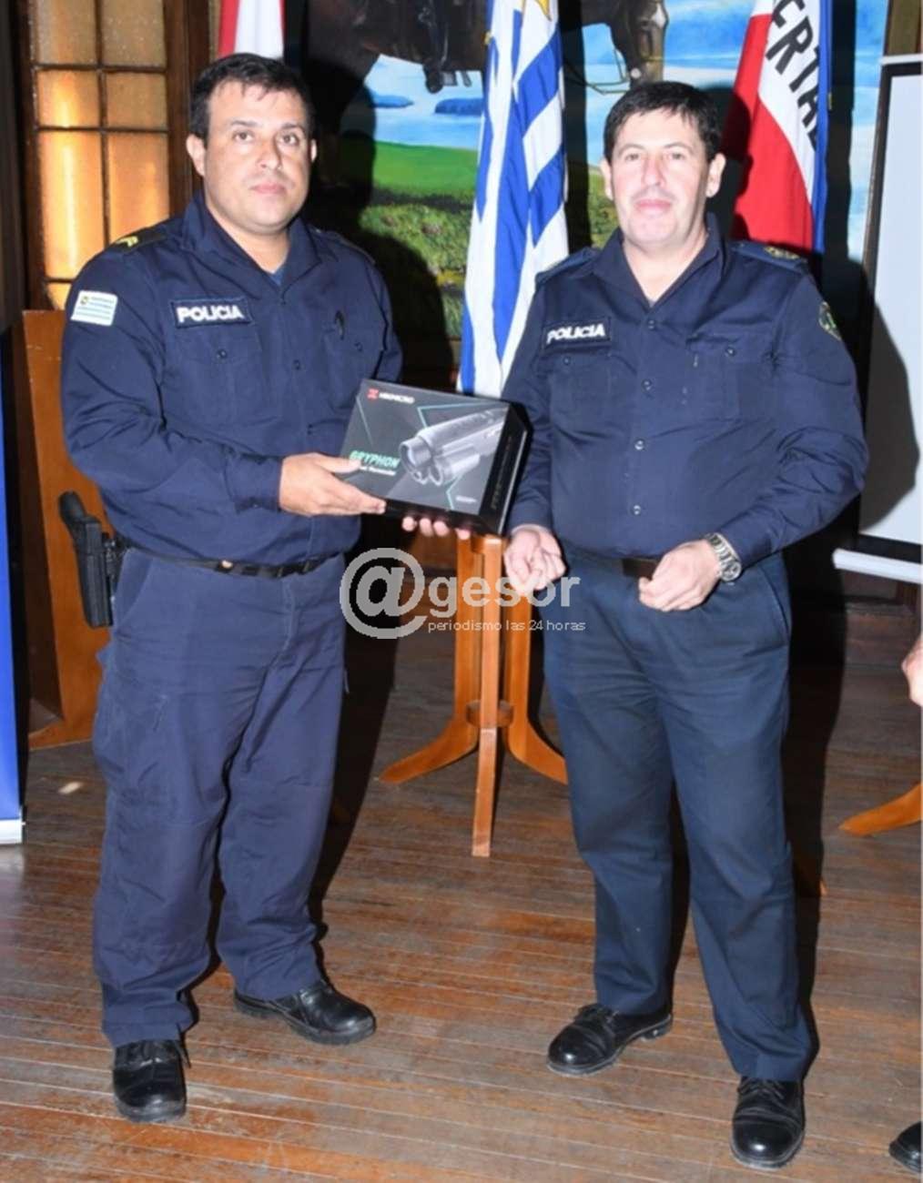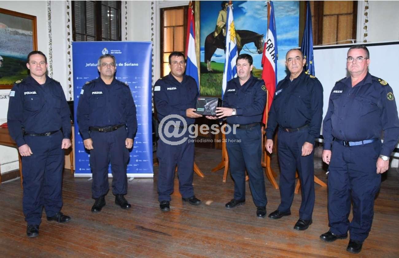 El comando de la Jefatura de Policía de Soriano, Jefe de Policía Crio. Mayor (r) William Martínez Quintana, Sub Jefe Crio. Mayor Lic. Luis Astigarraga Gómez, y Director de Coordinación Ejecutiva Crio. Mayor Carlos Escobar Brasil, recibió al comando de la Dirección Nacional de Seguridad Rural, Director Crio. Mayor (r) Williard González y Sub Director Crio. Mayor Anselmo Soca, que en acto protocolar hizo entrega al Encargado de la Brigada Departamental de Seguridad Rural de Soriano, Sgto Juan Albiso, de un visor térmico, para las tareas específicas que desempeña esa dependencia y eventualmente otras Unidades de esta Unidad Ejecutora.