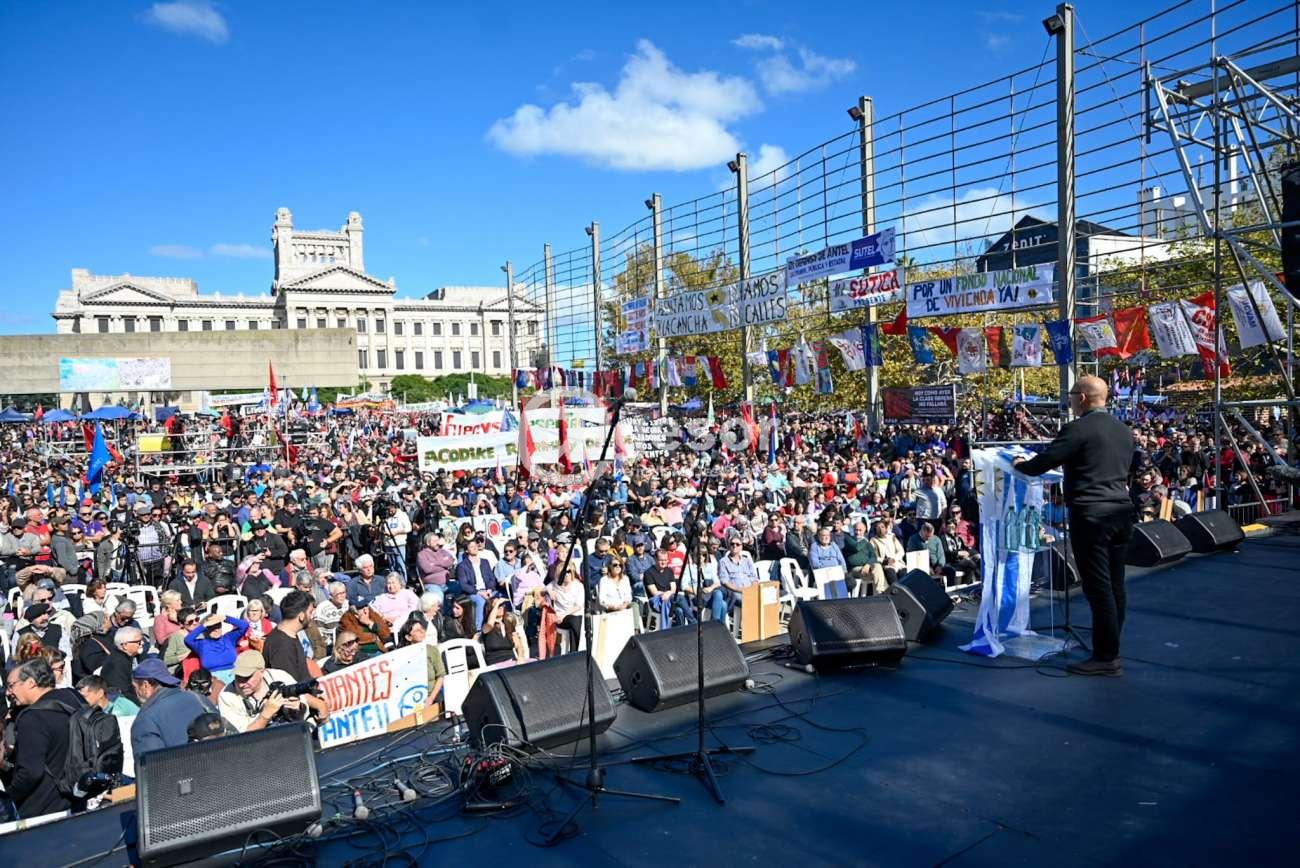 Durante la actividad hicieron uso de la palabra Martín Pereyra, presidente de la Federación de Funcionarios de la Salud Pública; el presidente del PIT-CNT, Marcelo Abdala; y Abigail Puig, dirigente de la Federación Uruguaya de Empleados del Comercio y Servicios, quienes se refirieron a la creciente desigualdad que existe en el país, así como a la pobreza y a la rebaja salarial.