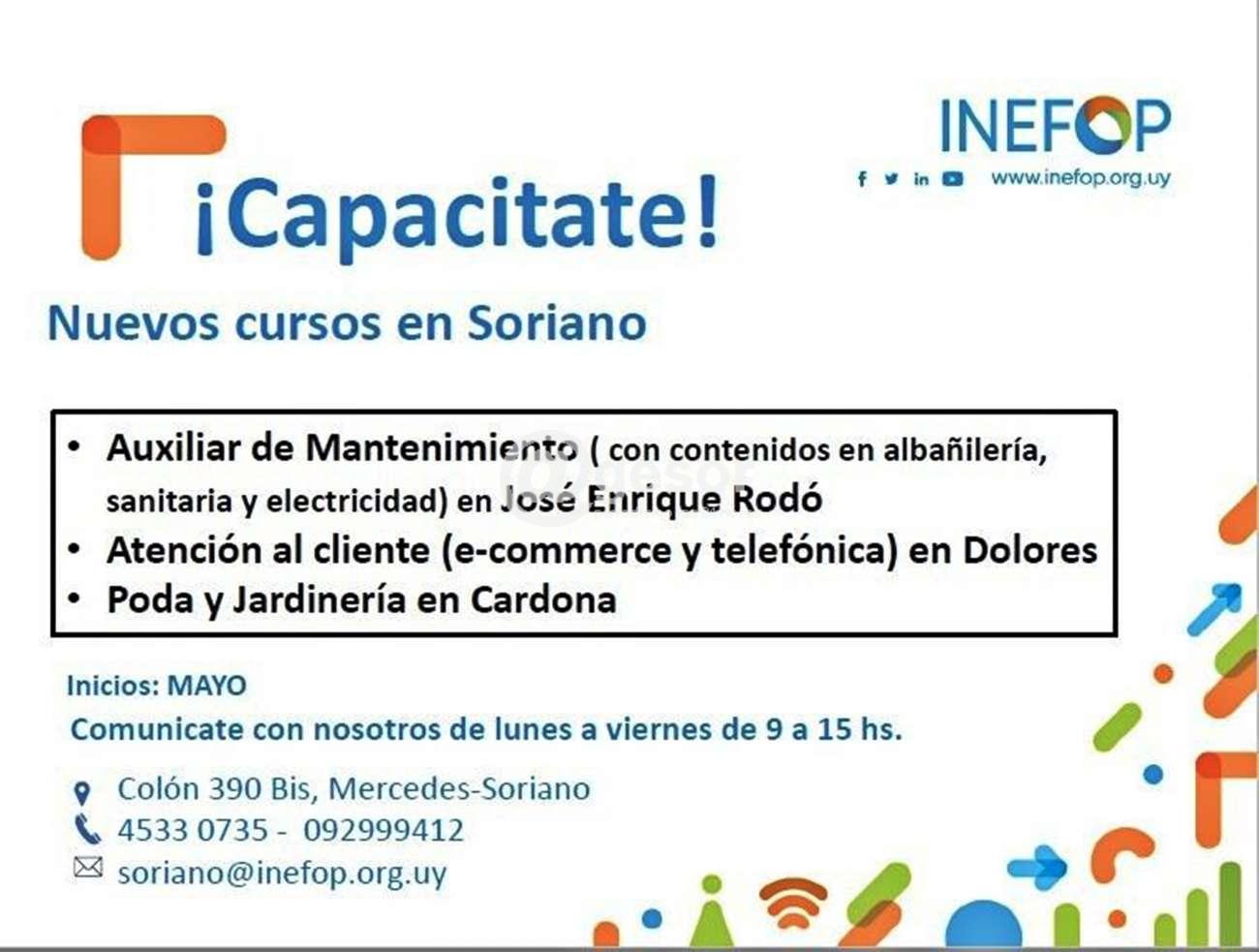 INSCRIBITE A TRAVÉS DE ESTE LINK O PASÁ POR LA OFICINA DE DESARROLLO (S. Alimundi entre Asencio y 18 de Julio) https://oportunidades.inefop.org.uy/index.php/cursos/yith_wcan=1&filter_alcance=soriano&query_type_alcance=or