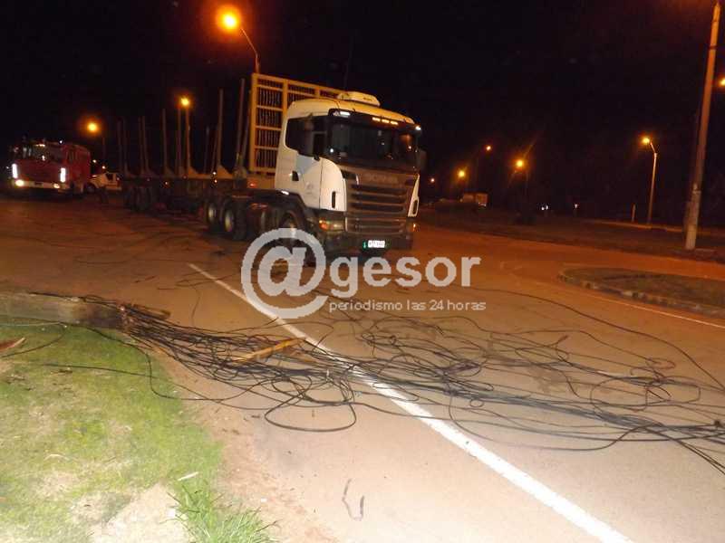 @gesor en contacto con uno de los trabajadores de la Estación Ancap de Mario Echenique (que pudo ver como transcurría el accidente), manifestó a nuestra Agencia de Noticias que próximo a las 17:00 horas la linga que cruzaba de este a oeste y que unía el predio del Hogar de Ancianos con el de Acodike, de manera repentina bajó de altura y ello fue provocando que una cantidad importante de camiones fueran enganchando de a uno los cables que parecían venirse abajo, tal como sucedió sobre las 20:00 horas. Según declaraciones del pistero de la estación de servicio, dada la situación que se venía observando, se avisó en más de una oportunidad a las autoridades que podían tener competencia en el asunto, aunque nadie se acercó hasta el lugar para  subsanar el inconveniente que terminó agravándose cuando la linga, los cables y la columna de madera fueron literalmente arrancados .