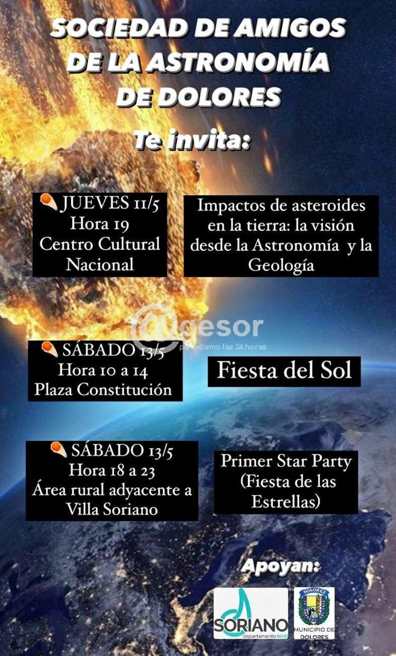 Sociedad Amigos de la Astronomía Dolores con el apoyo de la Intendencia de Soriano y el Municipio de Dolores te invita: