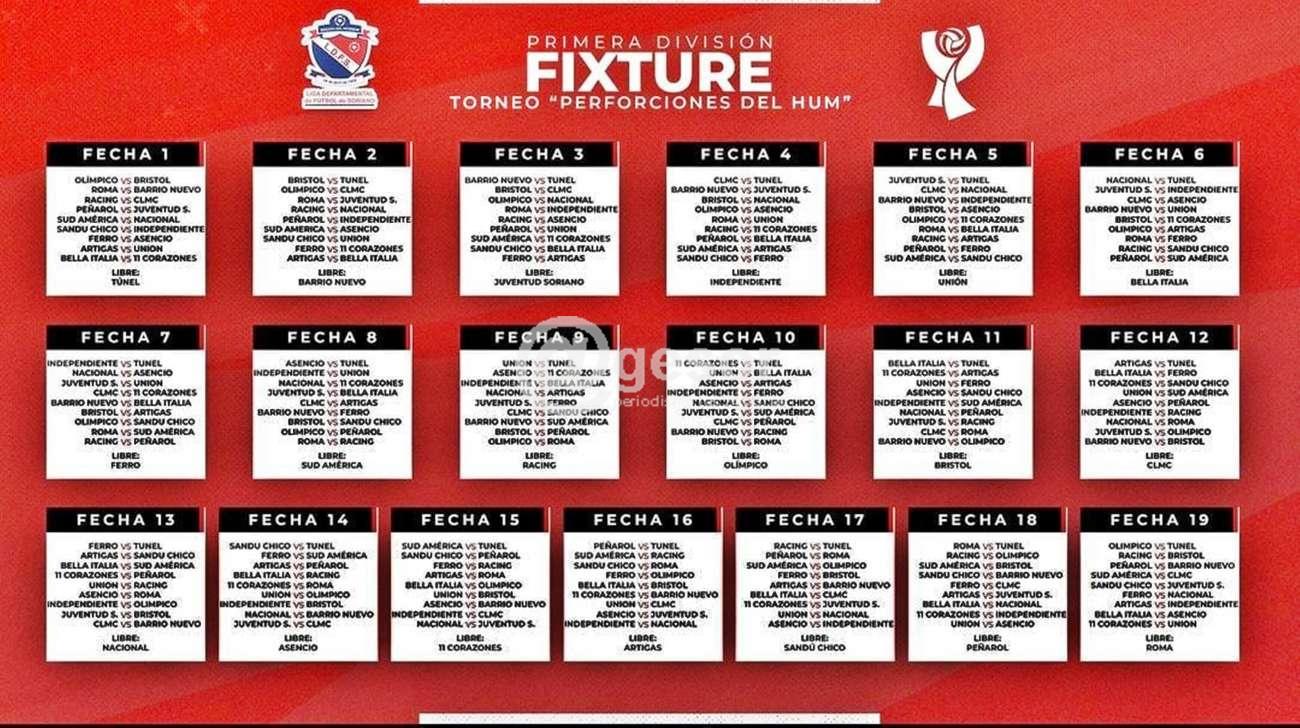 Cabse señalar que el sorteo del fixture se realizó bajo la fiscalización del Esc. Roberto Fernández, quien a su vez es dirigente de la Liga Departamental de Fútbol de Soriano y uno a uno fueron pasando los representantes de los clubes a sacar la bolilla con el número que le tocaba a su institución.