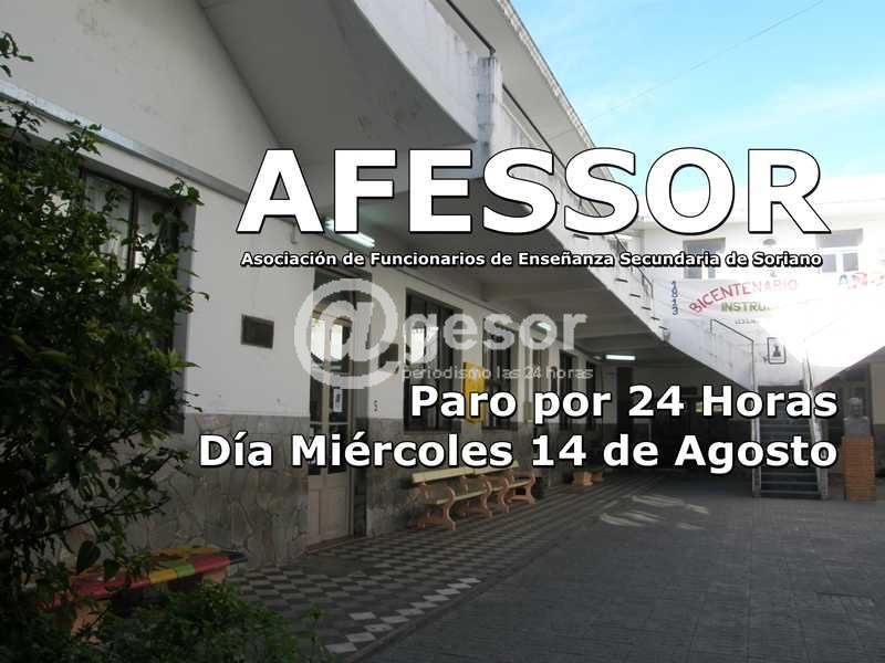 (Espacio contratado) AFESSOR - Asociación de Funcionarios de Enseñanza Secundaria de Soriano. Paro por 24 Horas. Día Miércoles 14 de Agosto