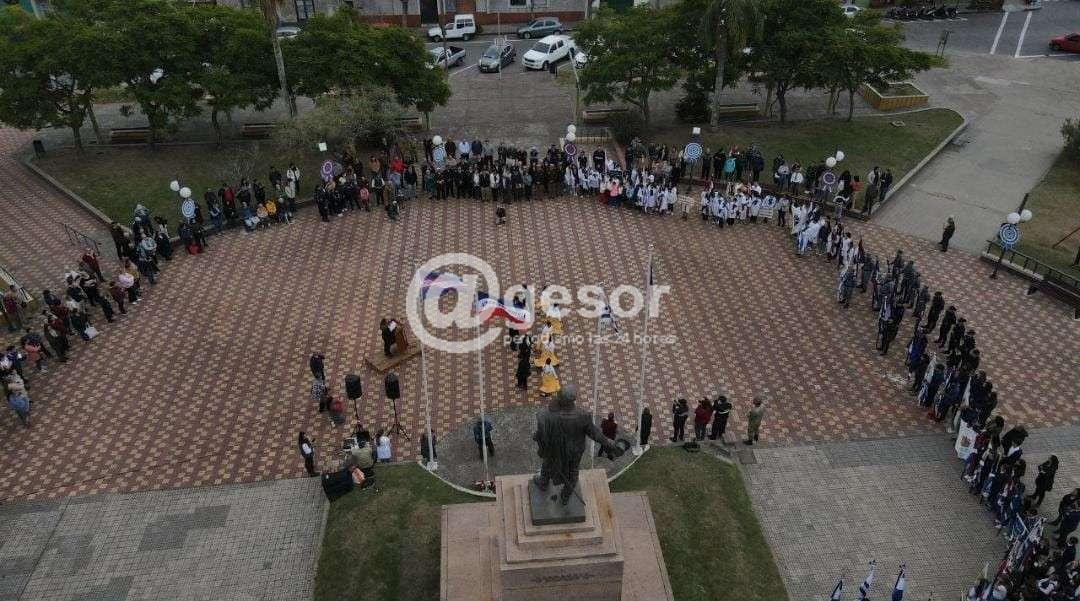 Comenzó con la entonación del Himno Nacional uruguayo, continuando con la oratoria, luego la colocación de ofrenda floral al pie del monumento el Gral. José G. Artigas, con toque de clarín.