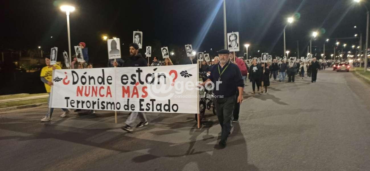 Posteriormente comenzaron a recorrer las calles hasta llegar al Espacio Memoria, que recuerda a los detenidos desaparecidos del departamento.