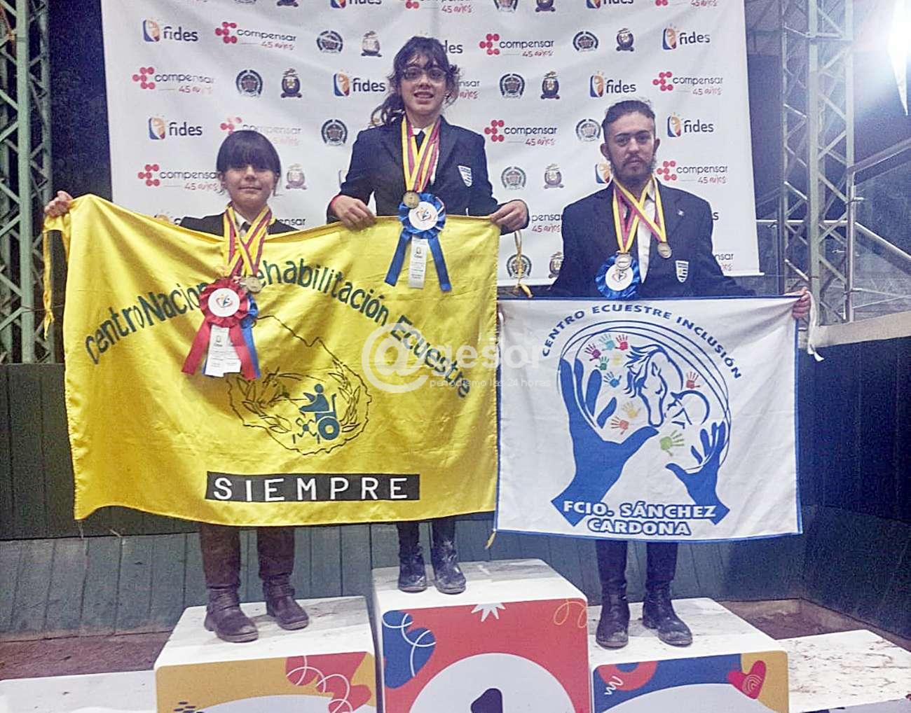 En esta instancia, que están representando a Uruguay y son parte de la delegación ecuestre celeste, también están representando Victoria y Michela al Centro de Rehabilitación Ecuestre Siempre de Mercedes, y Bruno Hernández al Centro de Equinoterapia Inclusión de Cardona.