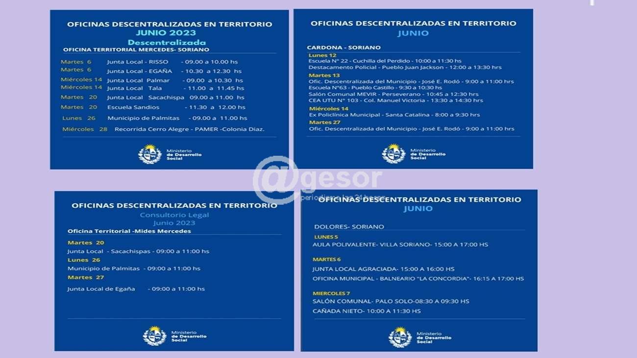 Las Oficinas descentralizadas del MIDES establecieron el calendario de  atención en el interior del departamento.  Comenzará el 6 de junio en Risso  y  Egaña, extendiéndose durante todo el mes.