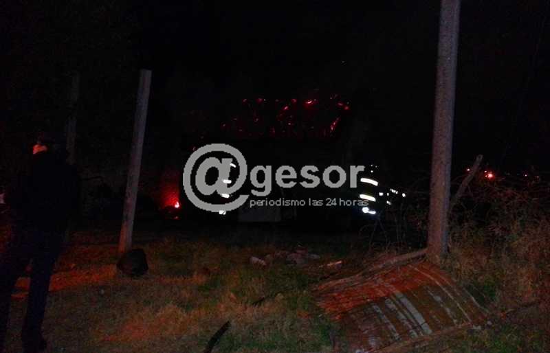 (por Daniel Estrada). Un incendio de proporciones se registró sobre la medianoche de este sábado en una precaria vivienda, con techo de paja cubierta de nylon, ubicada en calle Artigas Nº 966, de Mercedes. La misma era ocupada por una persona mayor y 5 menores de edad.