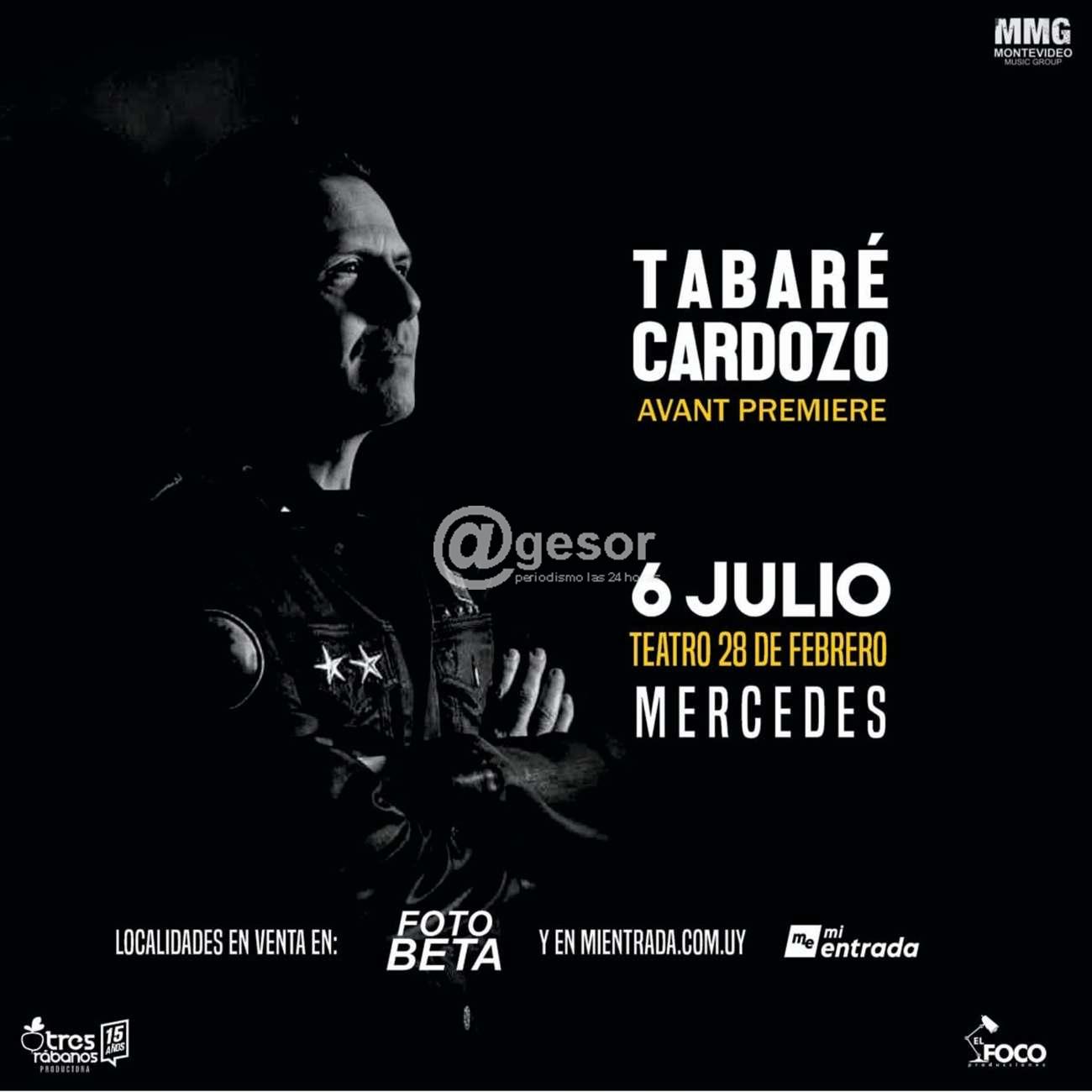 Este jueves 6 de julio con la producción de Tres Rábanos y El Foco estará presentándose en el Teatro "28 de Febrero" de Mercedes desde las 20.30 horas, TABARÉ CARDOZO (un artista de MMG montevideo) con su espectáculo Avant Premiere.