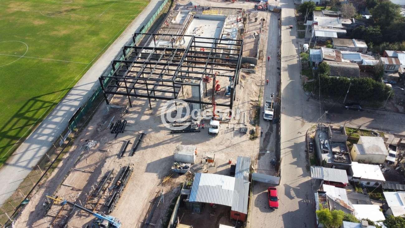 De forma paralela se trabaja en los sectores de oficinas y salones de usos múltiples que se basan en una estructura metálica. Allí culminó el montaje de la perfilería en hierro, donde allí ahora se agregarán entrepisos y cerramientos, lo cual es lo que ya se puede apreciar desde la distancia y que además da una idea de la altura que la obra va tomando.