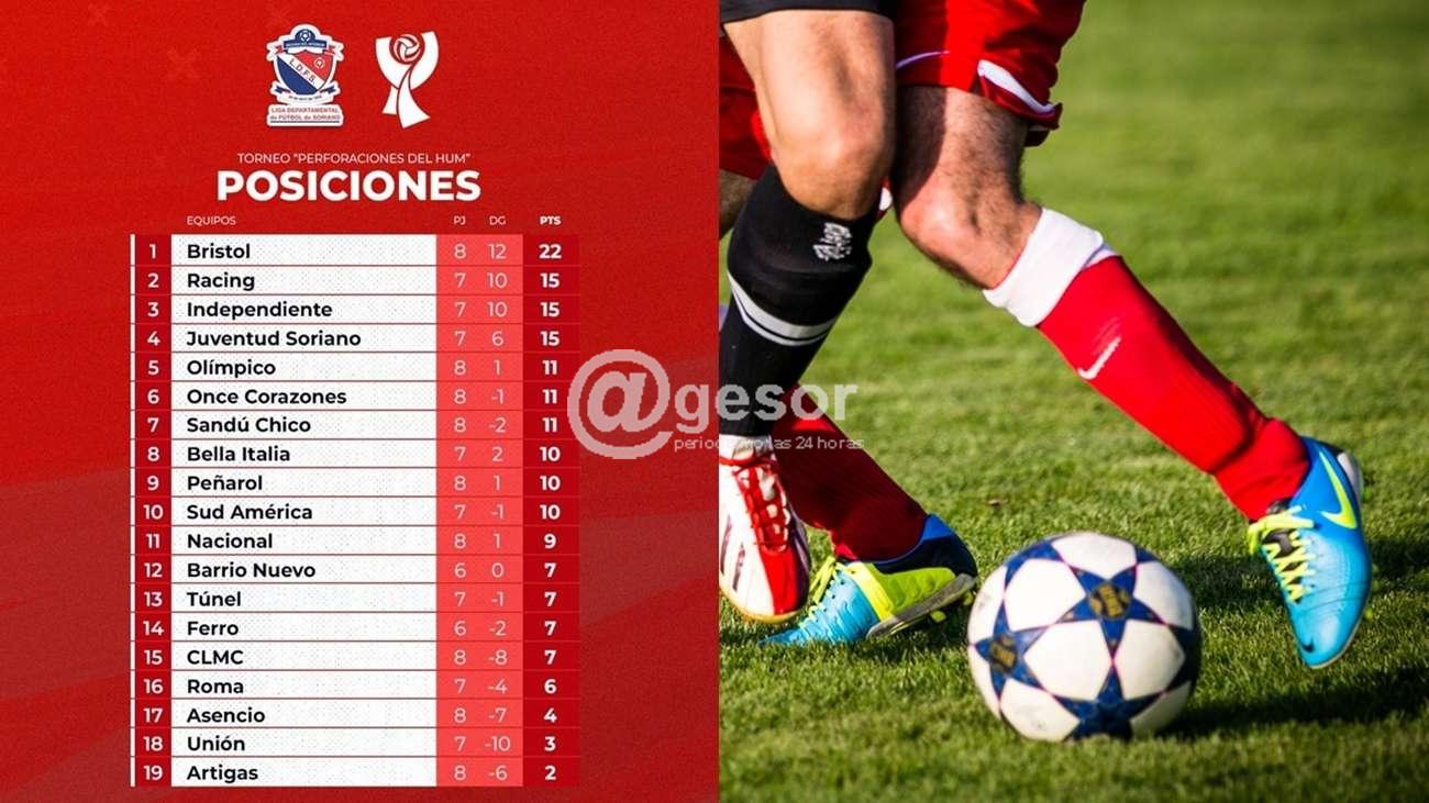 Bristol 22 puntos, seguido por Racing, Independiente y Juventud Soriano con  15.