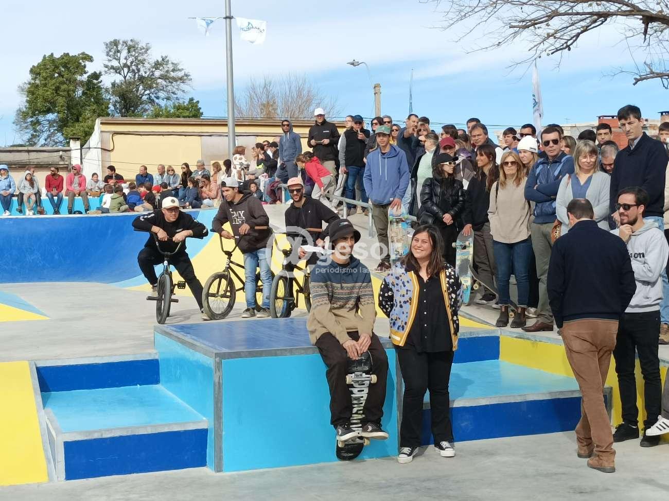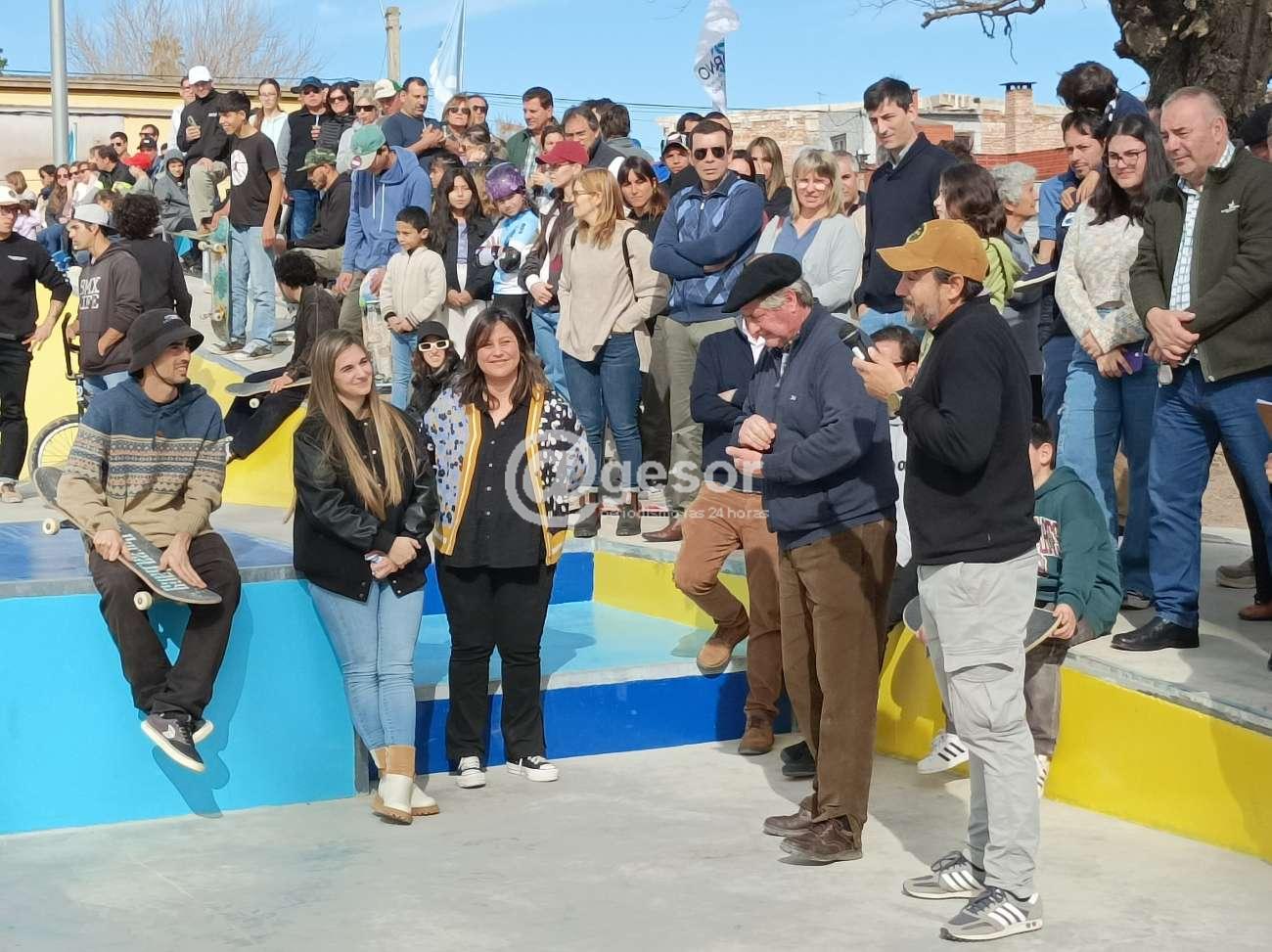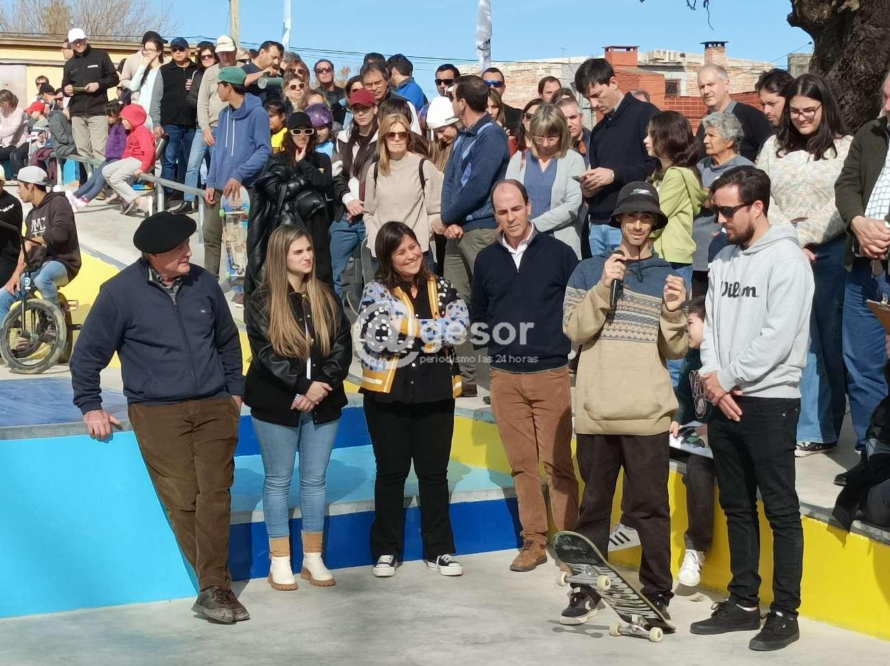 Barreiro luego de los agradecimientos a las autoridades presentes y a las diferentes reparticiones y grupos que participaron del proyecto, destacando "a la Arq. Silvana Pesquera que fue quien llevó adelante el proyecto, junto con el apoyo de Emiliano que desde el día uno estuvo trabajando con ella para que esta pista fuera lo que es hoy, es una pista que tiene 720 metros cuadrados, incluye obstáculos que se pueden practicar desde un nivel inicial hasta un nivel avanzado. Emiliano (Alvez) dice que quedó como en la foto, claro que sí, eso se lo debemos agradecer también a la empresa, esto fue licitado, agradecerles a Exequiel, María José, a toda su gente, trabajamos en equipo y es lo que se nota acá. Vinieron 24 chiquilines del Comité de Skate para hacer las demostraciones de todo lo que se puede hacer en esta pista, disfrútenlo, esto es un espectáculo, que no se ha visto acá, esto es el comienzo, se vienen campeonatos, seguimos avanzando, muchas gracias!!!".