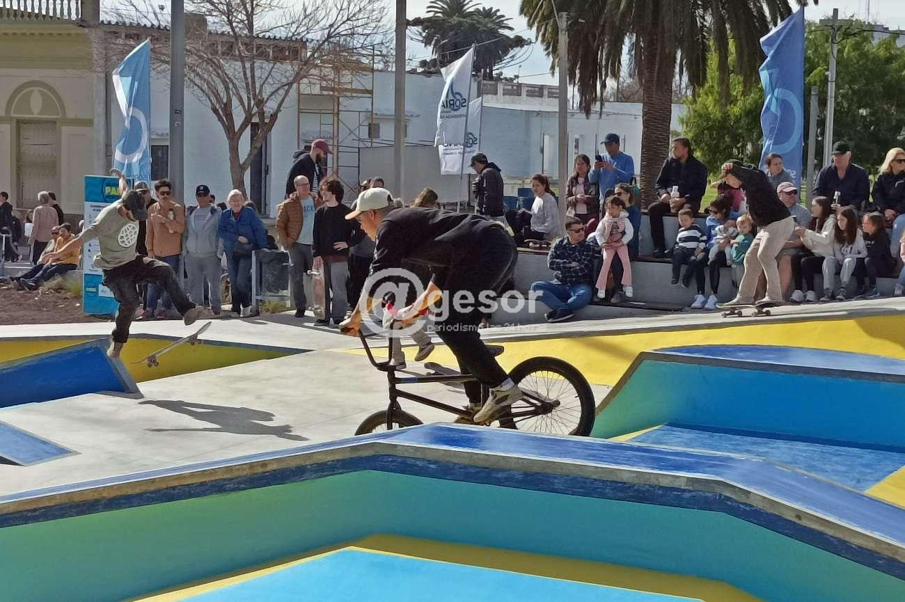 La inauguración de la pista de skate concitó la atención de mucha gente este domingo, que complementa el paseo costanero y la zona de deportes en la capital sorianense