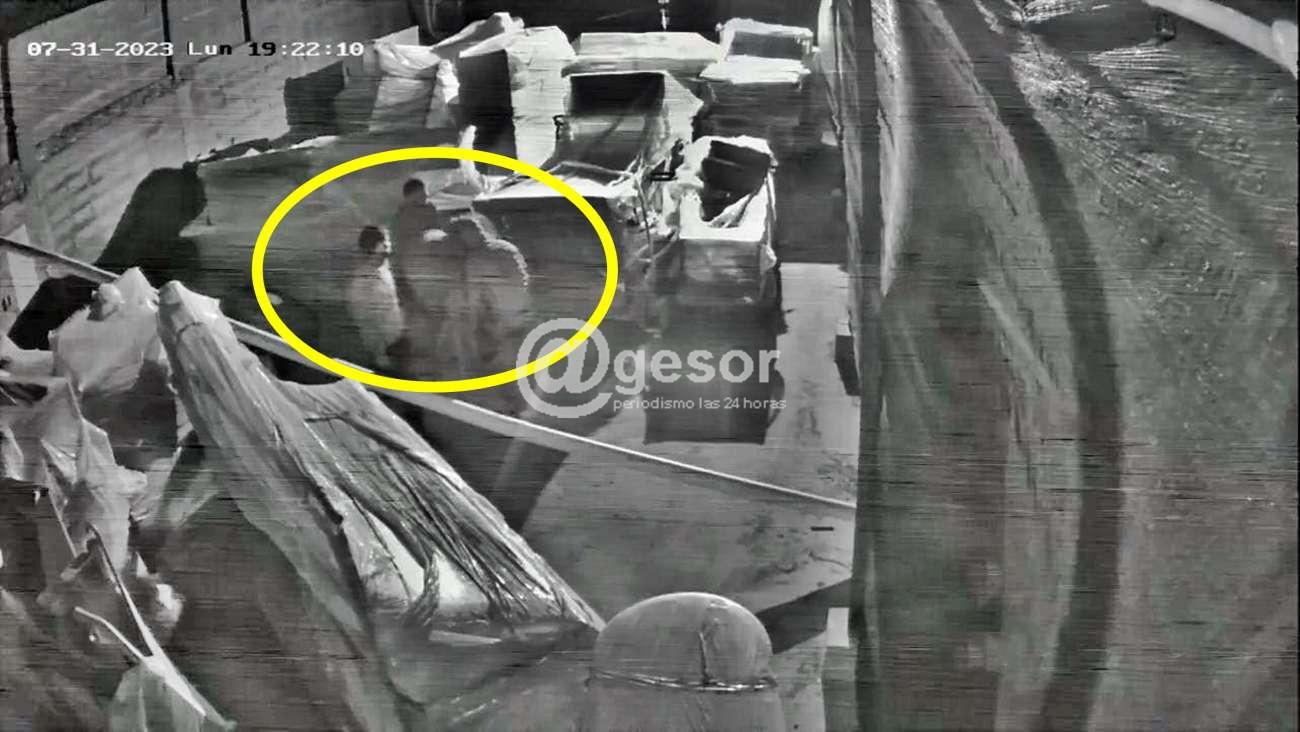 Este mismo lunes, es decir pocas horas después, a las 19.22 horas como lo marca la fotografía extraida de la filmación, en este caso se logra avistar por las cámaras de videovigilancia, tres masculinos dentro de uno de los locales nuevos de las obras, donde se encuentra la maquinaria nueva embalada aun, allí se les aprecia, dándose cuenta a la Policía y concurre personal de la propia empresa, lográndose detenerlos, tratándose de dos mayores y un menor. De acuerdo a lo que se señaló a @gesor buscaban en esta ocasión robar cables y también tenían interés en la hormigonera, a la que se les ve cargarla en las imágenes de la cámara de videovigilancia.