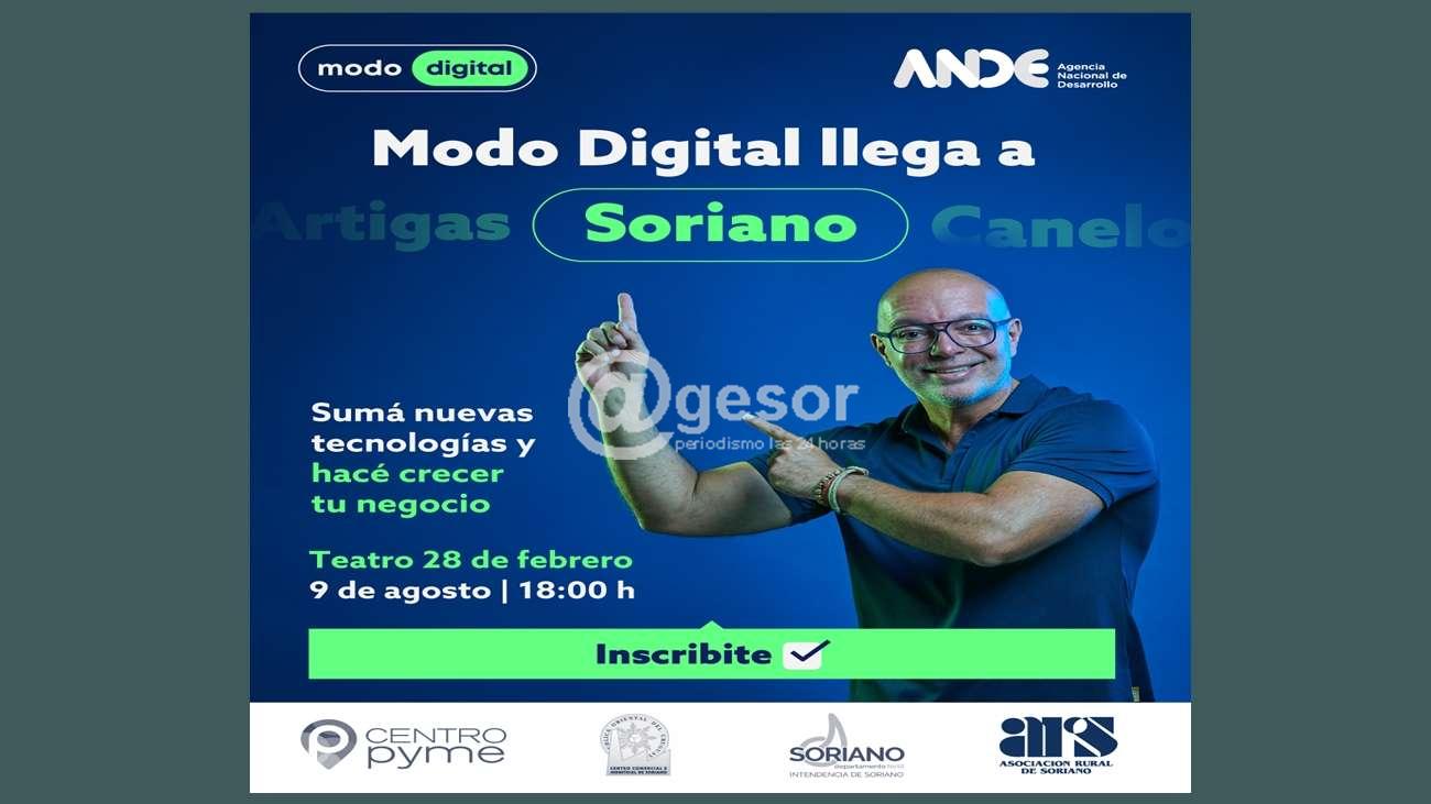 La invitación es para el miércoles 9 de agosto a las 18 horas en el Teatro 28 de Febrero, con la organización de la Agencia Nacional de Desarrollo (ANDE) a través de su programa Modo Digital y el apoyo de la Intendencia Departamental, el Centro Comercial e Industrial de Soriano y el Centro Pyme.