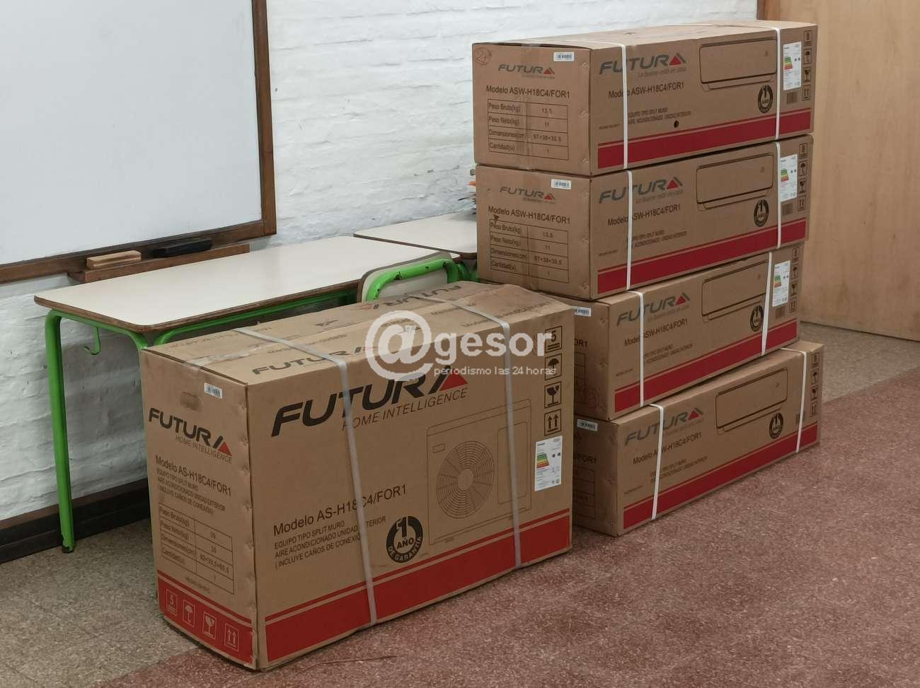Bruno y sus compañeros nos han colaborado con los aire acondicionados que estaban en proyecto de Comisión en primer lugar, ahora los tenemos para poder disfrutarlos tanto cuando el frío o el calor se hacen notar, nuestros niños van a estar más cómodos, que esto sirva para inspirar a otros, para unirse en el esfuerzo de mejorar la escuela. La Escuela 7 es muy numerosa, de casi 500 niños, que se merecen lo mejor, el esfuerzo mayor, además del trabajo y el cariño que les brindamos los docentes, tener las comodidades y todo lo necesario, para que contribuya, fortalezca, porque uno lo hace con mucho cariño lo que eligió para la vida y ve esa gratificación en los niños, los ve felices, cómodos, vienen muchos niños al comedor, vamos a tener en la cocina todo lo necesario, ellos nos donaron dos cocinas, heladera, además de equipos de música, televisión, una impresora que es muy útil para el trabajo administrativo, cinco baldes de 20 litros de pintura y además se hacen cargo de la instalación de los aire acondicionado, un montón de cosas que ustedes van a poder registrar en fotos. La idea es seguir reafirmando y mejorando el futuro para nuestros niños que es lo más importante".