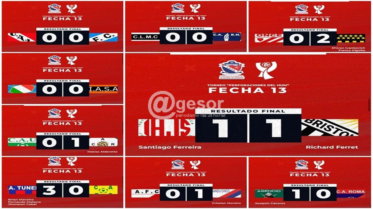 Diez goles se marcaron este domingo en la 13ª fecha del fútbol mercedario. Una etapa sin resultados abultados y donde se registraron cuatro empates.