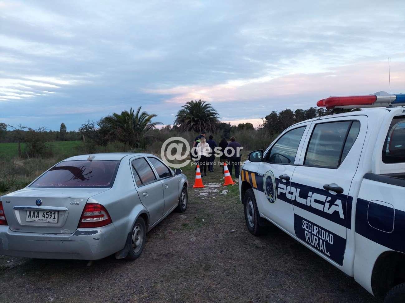 Según pudo saber @gesor una persona circulaba por un trillo paralelo a la vía férrea junto a Ruta 12, al Este de la rotonda de Rutas 12 y 57, cerca de lo que fuera la planta industrial de Cedetex, esta persona manifiesta que vio pasto quemado, se arrima y ve un cuerpo.