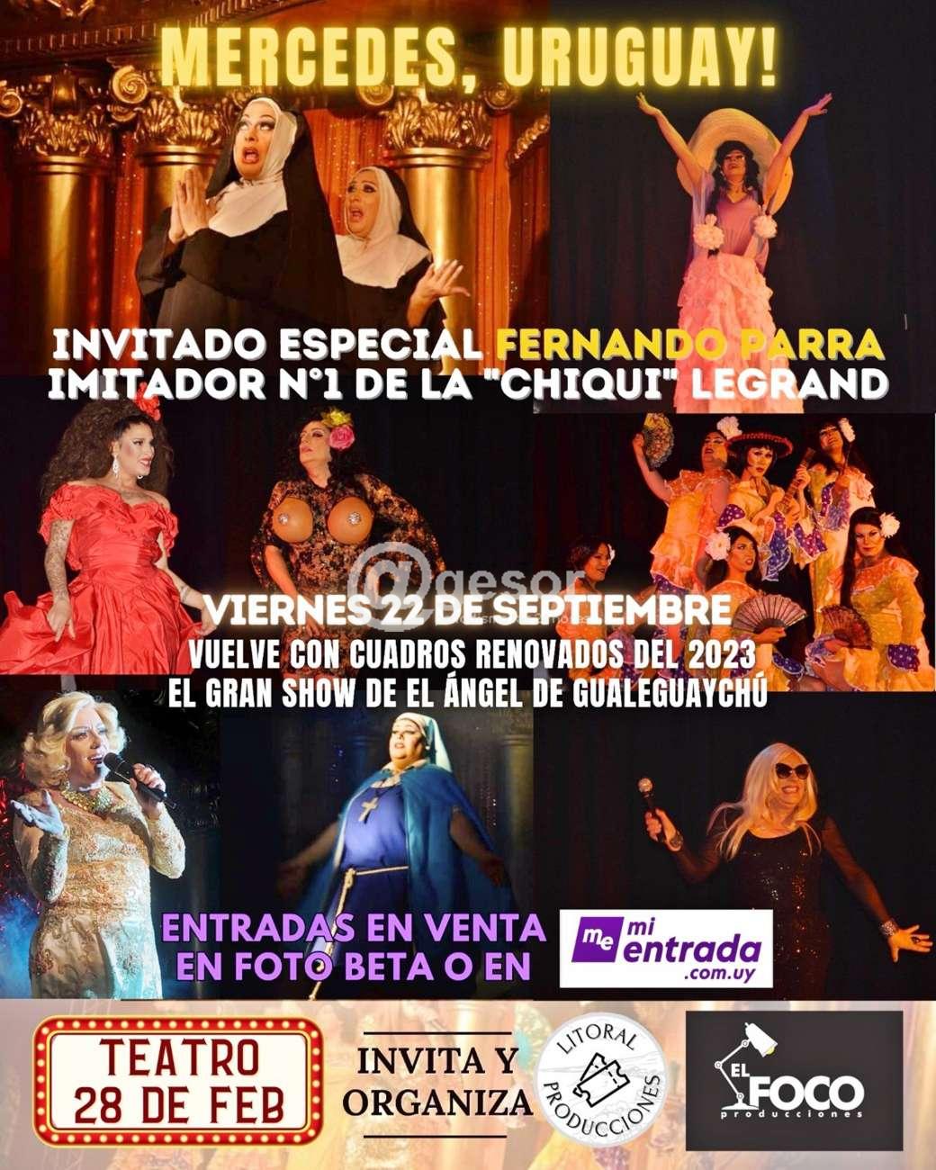 Este viernes 22 de setiembre vuelve el gran show de ¨EL ANGEL¨ de Gualeguaychú con un artista como invitado especial, tratándose de Fernando Parra, imitador Nº 1 de la ¨Chiqui¨ Legrand.