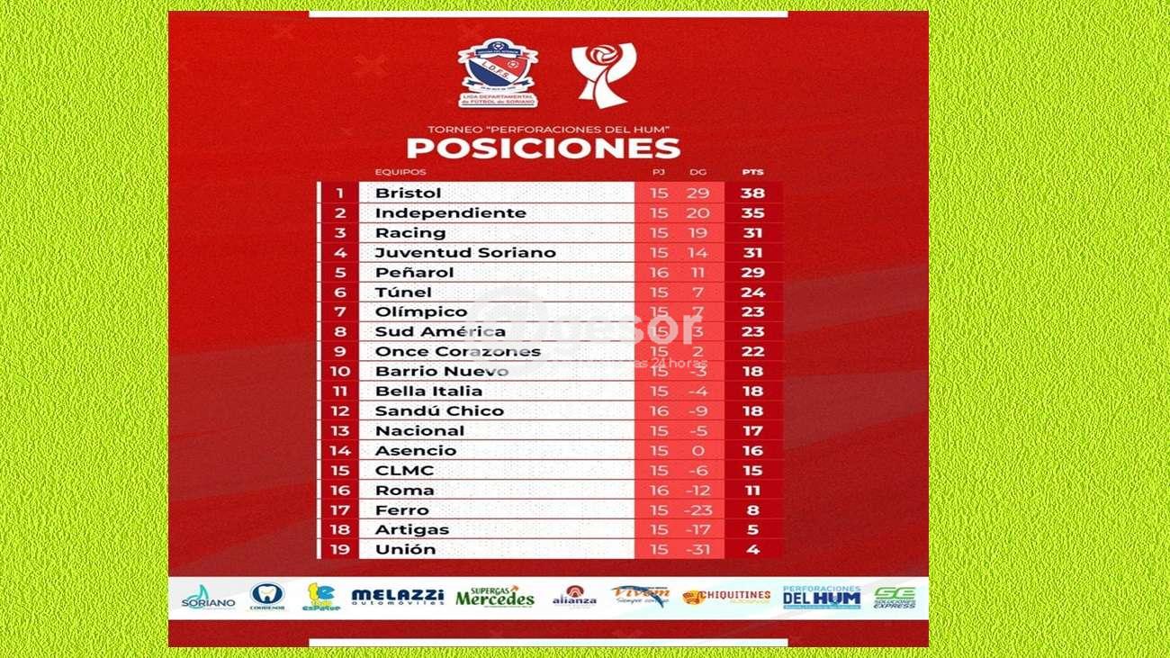 Con  38 puntos Bristol sigue  al frente de la tabla del campeonato de  fútbol de Mercedes, seguido a  tres unidades por Independiente.