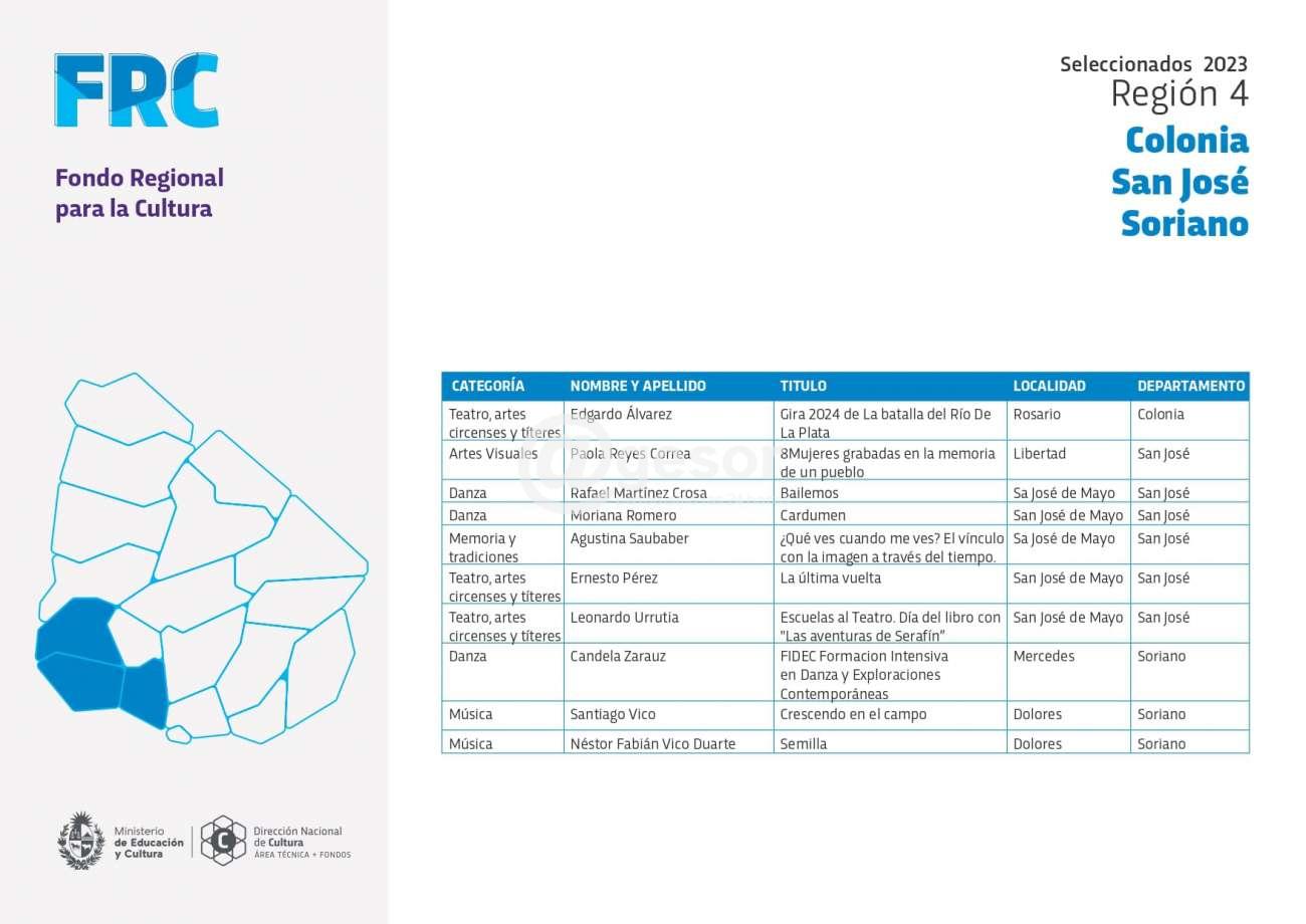 El Ministerio de Educación y Cultura a través de los Fondos Regionales para la Cultura dio a conocer los proyectos seleccionados en las diferentes áreas artísticas.