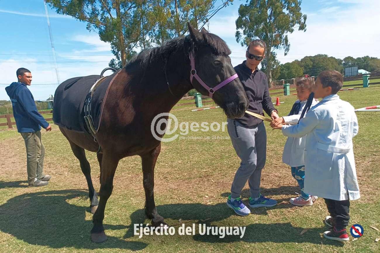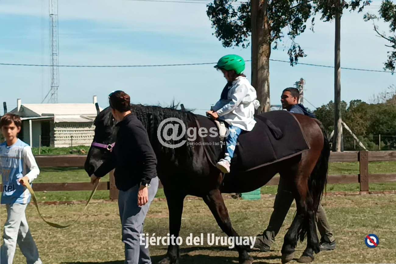 El Batallón "Asencio" de Infantería Nº 5 está realizando actividades de intervención asistida con caballos y estimulación cognitiva a 50 niños de la Escuela Especial Nº 104 de Mercedes, que no cuentan con ningún convenio en los Centros de Equinoterapia del departamento de Soriano.