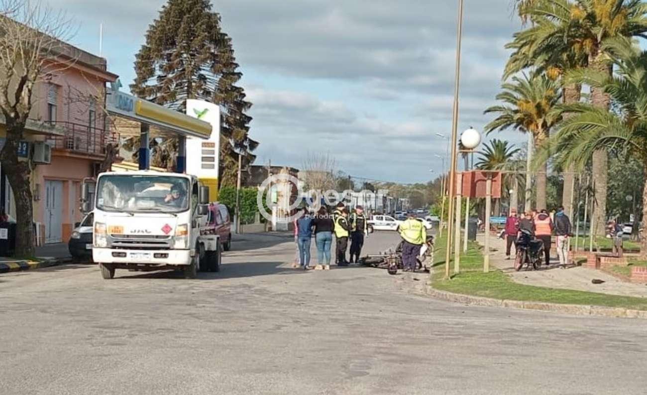 El hecho ocurrió en horas de la tarde de este viernes en la esquina de bulevar Cardona y Barboza, la pareja circulaba en una moto Yumbo PX 110 matrícula KCH 1908 por Bulevar Cardona de Este a Oeste, conducida por el masculino, que es menor de edad y por ende no sólo desobedeció la orden de detener la marcha para el control, tampoco está habilitado para conducir ese vehículo y además atropelló a un funcionario policial y a dos motos que se encontraban estacionadas en el lugar.