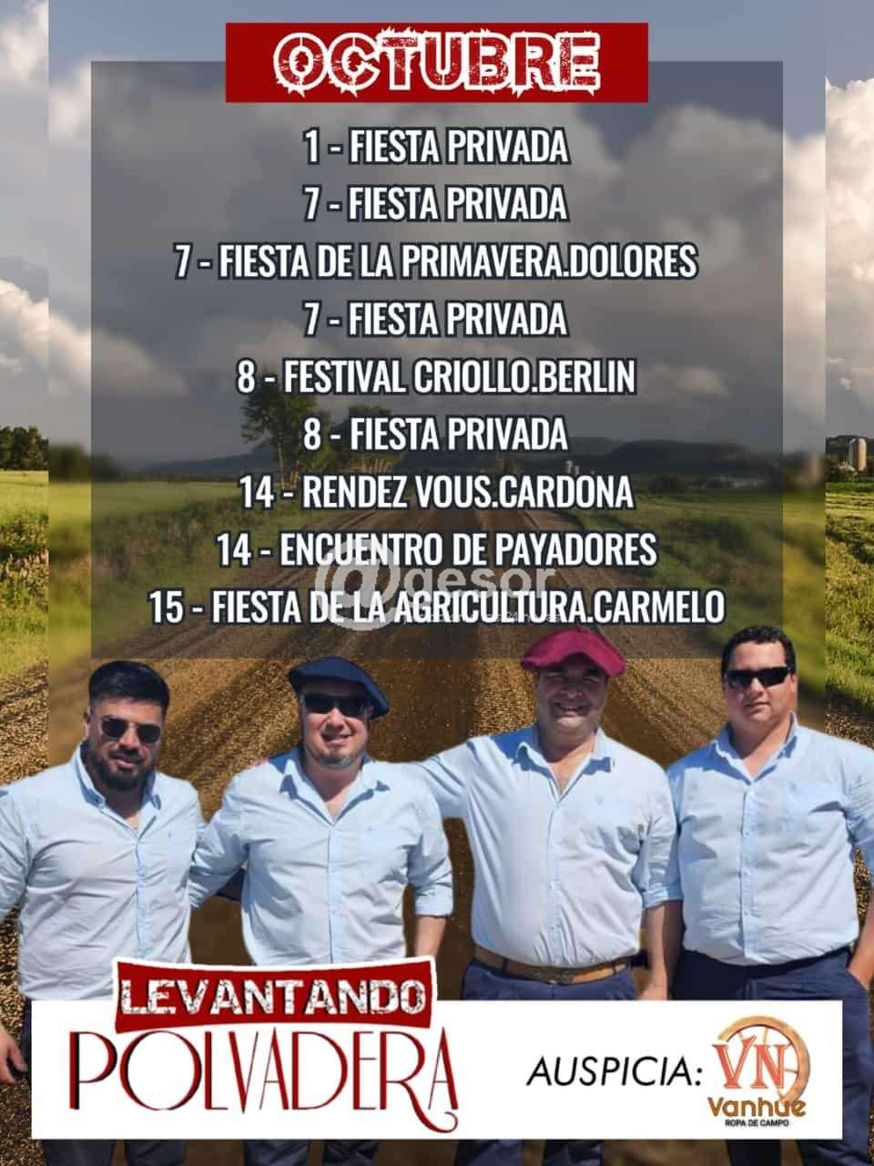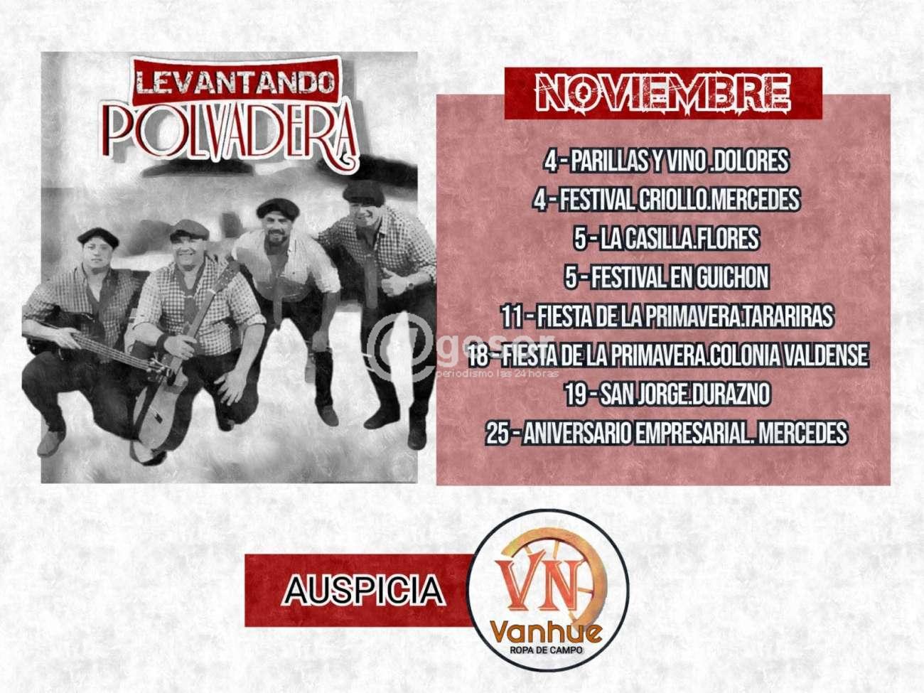 Una amplia agenda de actuaciones tiene ya confirmada el grupo mercedario Levantando Polvadera, en festivales de la región y de otros puntos del país, así como también en fiestas privadas donde son contratados para animarlas musicalmente con su contagiante ritmo.