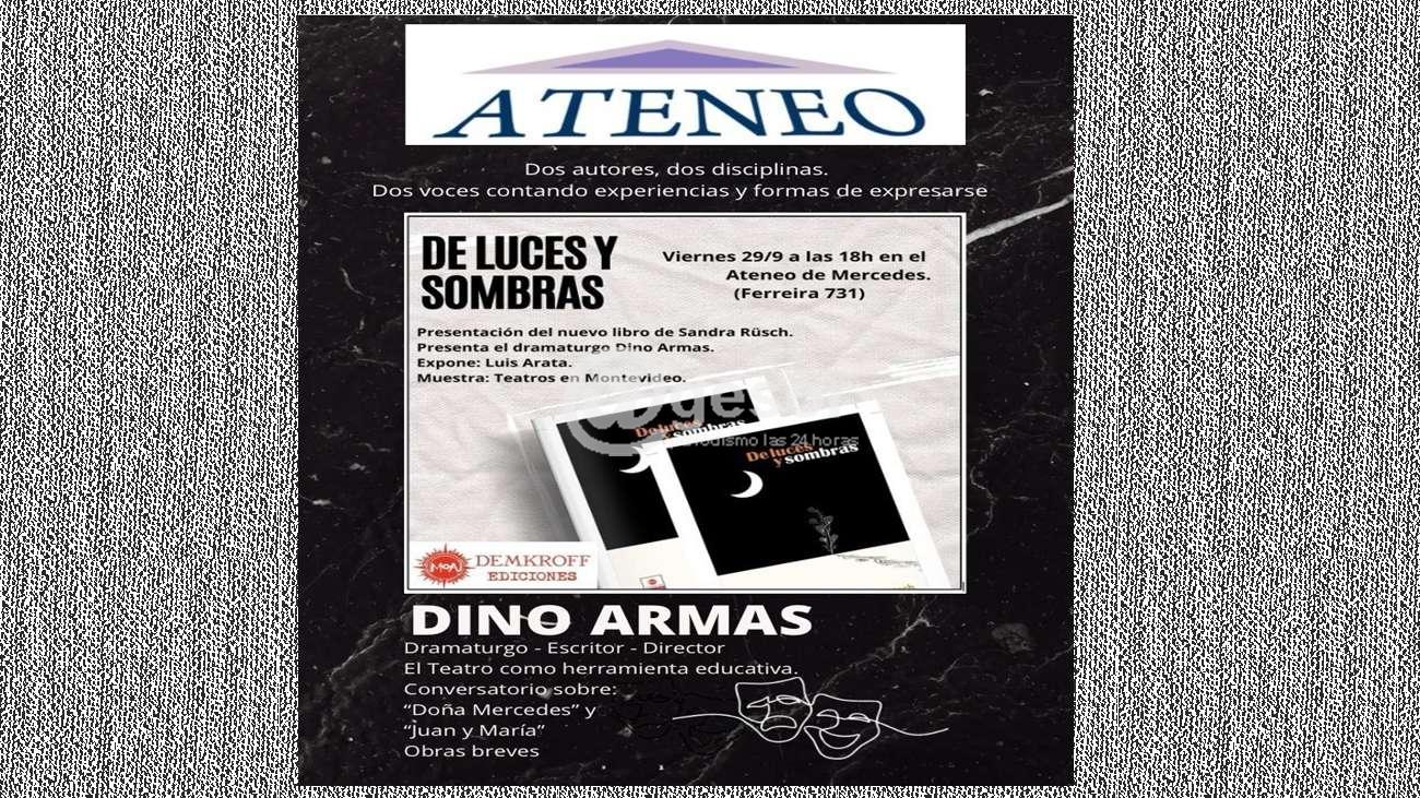 Este viernes 29 a las 18 horas se realizará la presentación del libro "De Luces y Sombras, de Sandra Rüsch. Será en la fundación Ateneo Mercedes (Ferrería 731), a partir de las 18 horas.