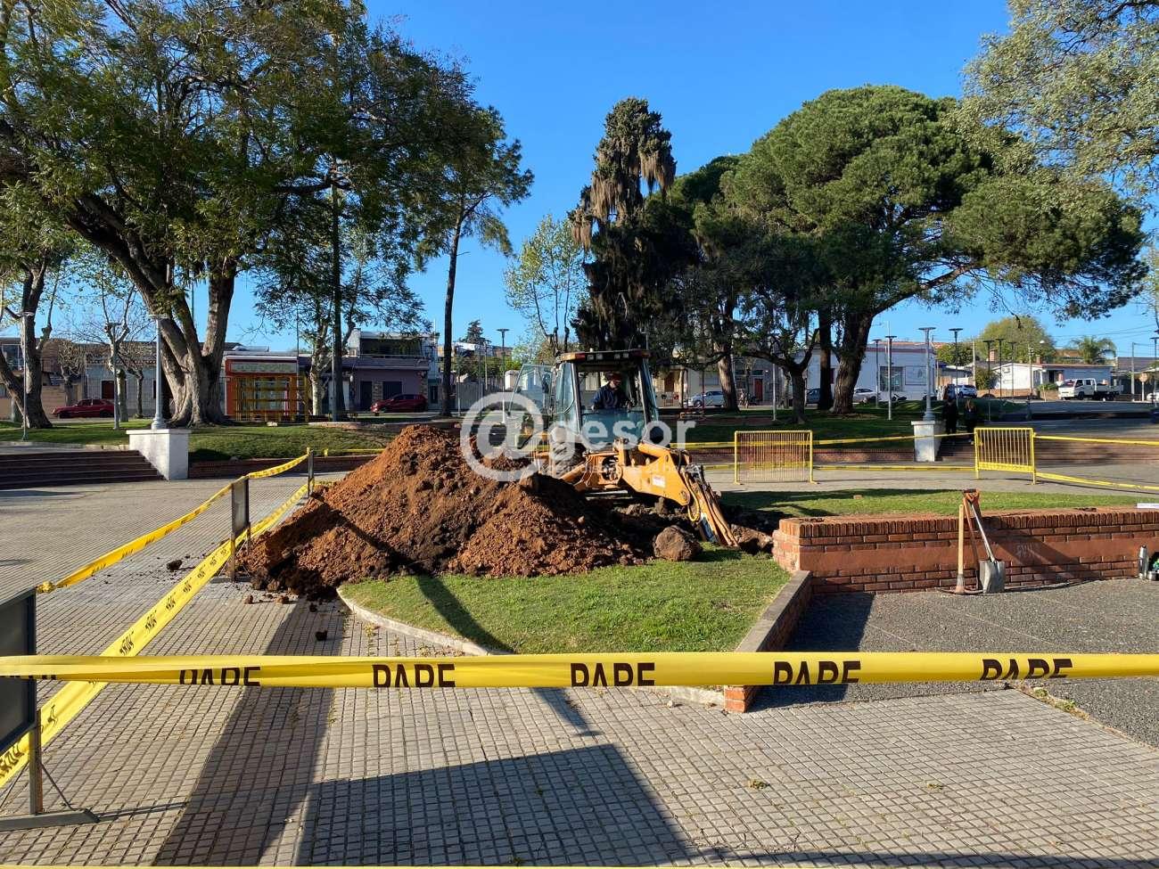Esta tarea está a cargo de personal del Dpto. de Arquitectura, comenzando este miércoles a realizar la excavación para preparar la cimentación de la columna a instalar.