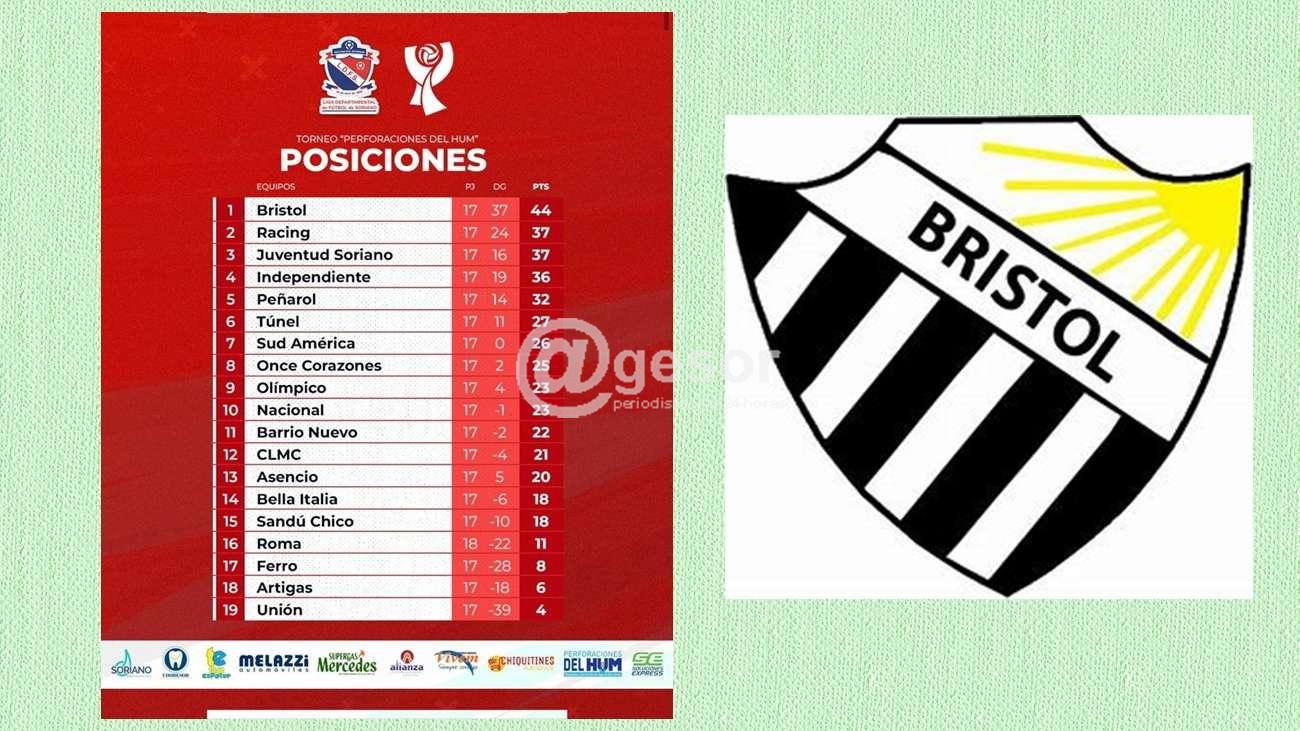 Este domingo Bristol volvió a golear y se quedó con el campeonato del fútbol de Mercedes. Con este nuevo triunfo llegó a 44 puntos, en tanto los segundos, Racing y Juventud Soriano tienen 37 puntos cada uno.