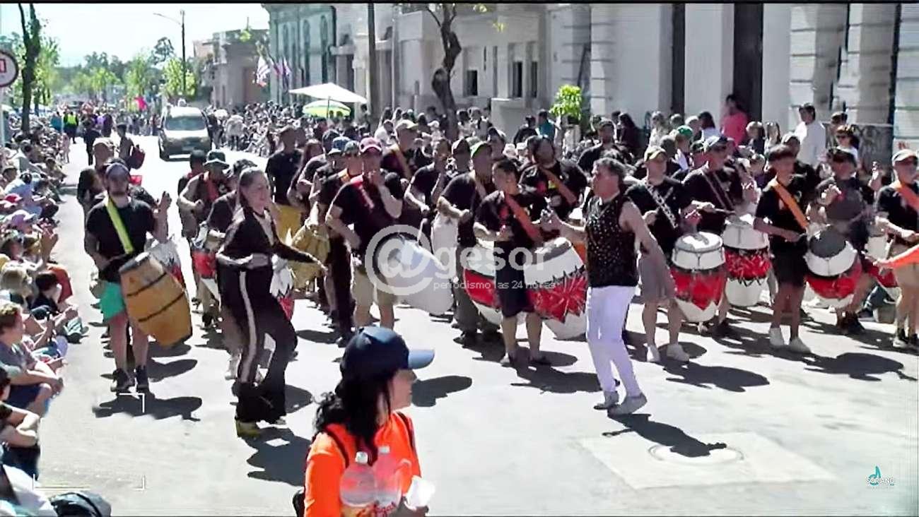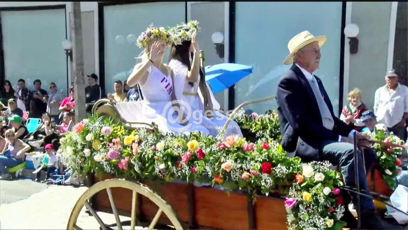 Ambos desaparecidos físicamente en el último año y fueron homenajeados con el lanzamiento de globos blacos y el aplauso generalizado de la gente que pobló el recorrido, para posteriormente dar comienzo al desfile comercial, y la presentación de uno de los símbolos del Carnaval doloreño la comparsa lubola 7 y 3 del Puerto con sus lonjas sonando en la apertura, brindando un muy buen espectáculo, para luego sí dar paso al pasaje de las carrozas que se inició con una carroza histórica que fue reciclada, que no se utilizaba hace muchos años y lució notable con la Reina y Pimpollo del año anterior y luego si los carros alegóricos volvieron a mostrar un muy buen nivel en su confección, el ingenio y la capacidad creativa, este año con más énfasis también en las coreografías, con mucha alegría, color y ritmo, un desfile brillante que se apreció al mediodía con la expectativa de otro tipo de lucimiento en la noche con los efectos que podrá mostrar cada uno de los carros.