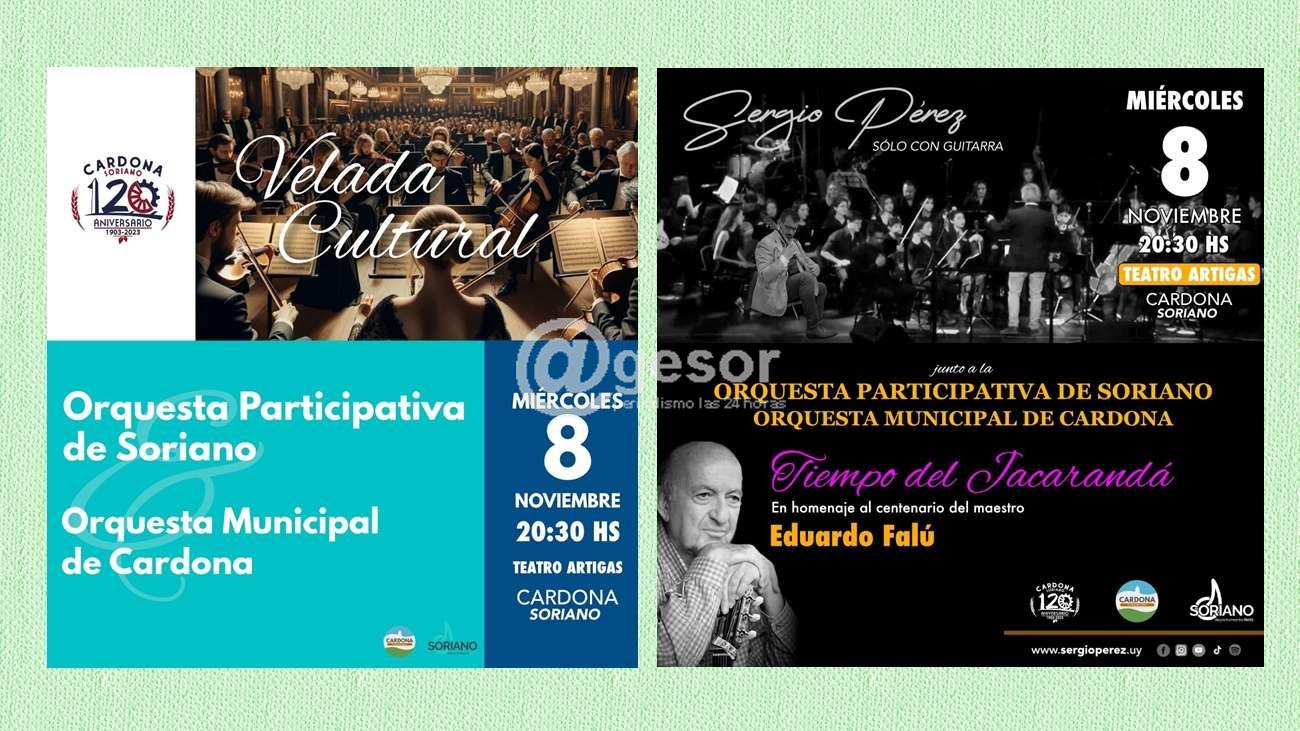 La noche se engalanará con la presentación de la Orquesta Participativa de Soriano, bajo la batuta del maestro Ignacio Algorta. Además, se contará con la participación estelar de la Orquesta Municipal de Cardona, que junto a la anterior, deleitarán al público con un repertorio diverso y rico en géneros musicales populares.