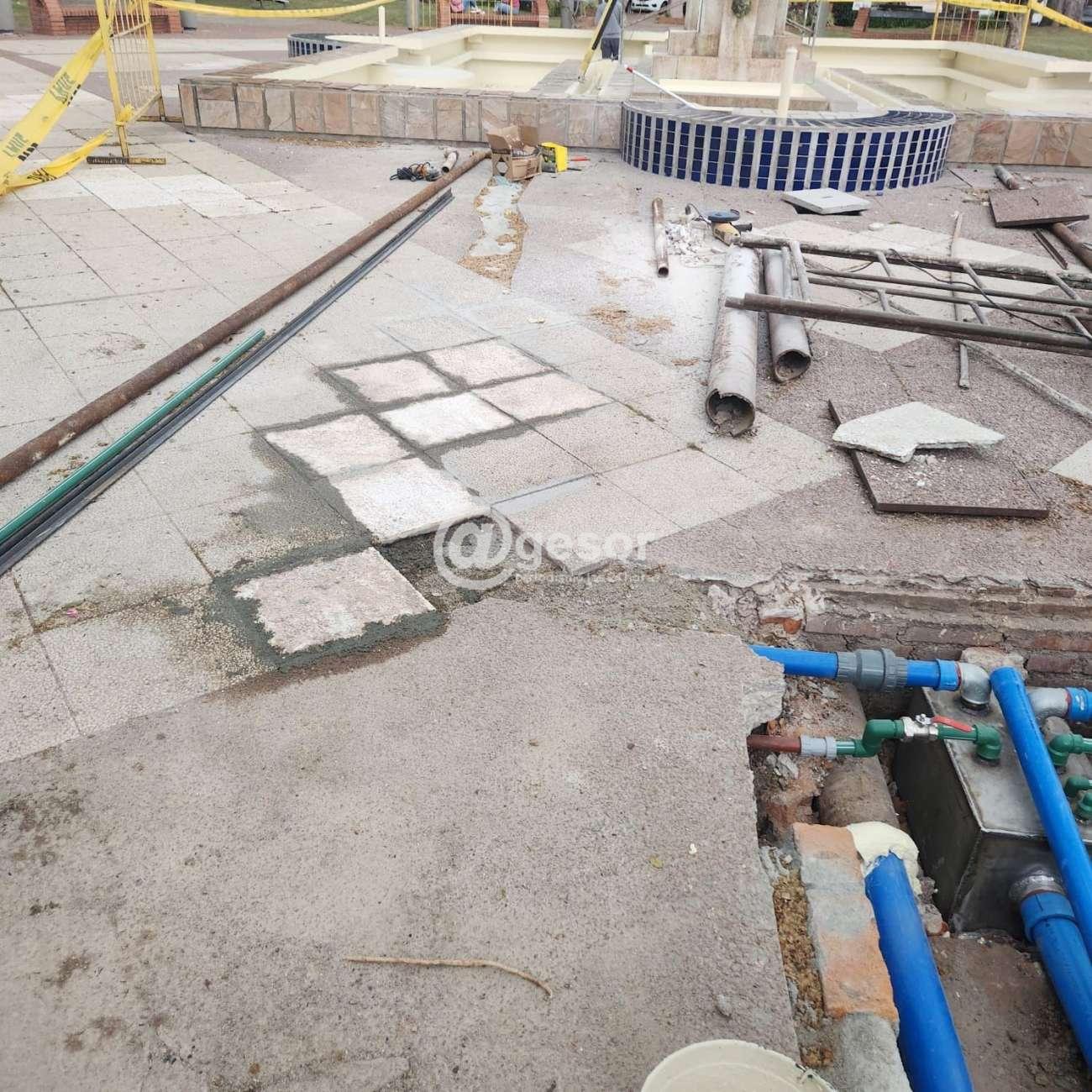 Notamos que la cañería de la fuente estaba en mal estado generando humedades e impactando negativamente en el piso por lo que se cambió completamente mejorando el sistema hidráulico.