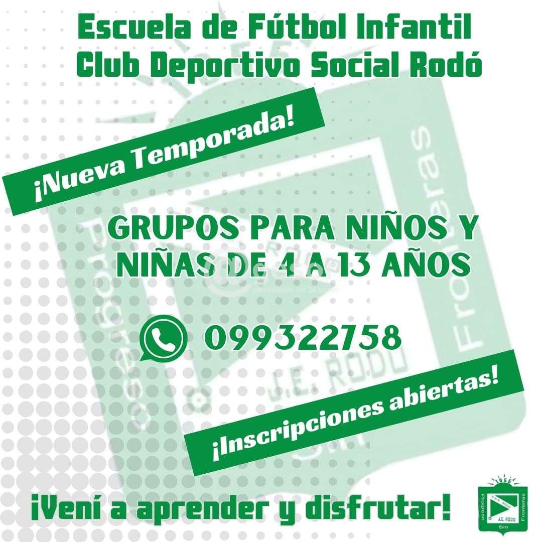 Están abiertas las inscripciones para la Escuela de Fútbol Infantil del Club Deportivo Social Rodó, en una nueva temporada.