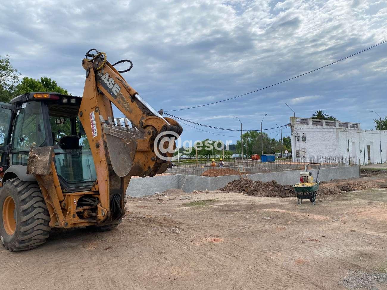 Tras culminar la construcción de los muros de contención, se procedió a impermeabilizarlos, para que actualmente se rellene con tosca todo el interior y se prepara la superficie superior para conformar carpeta de hormigón, lo que será el piso de escenario.