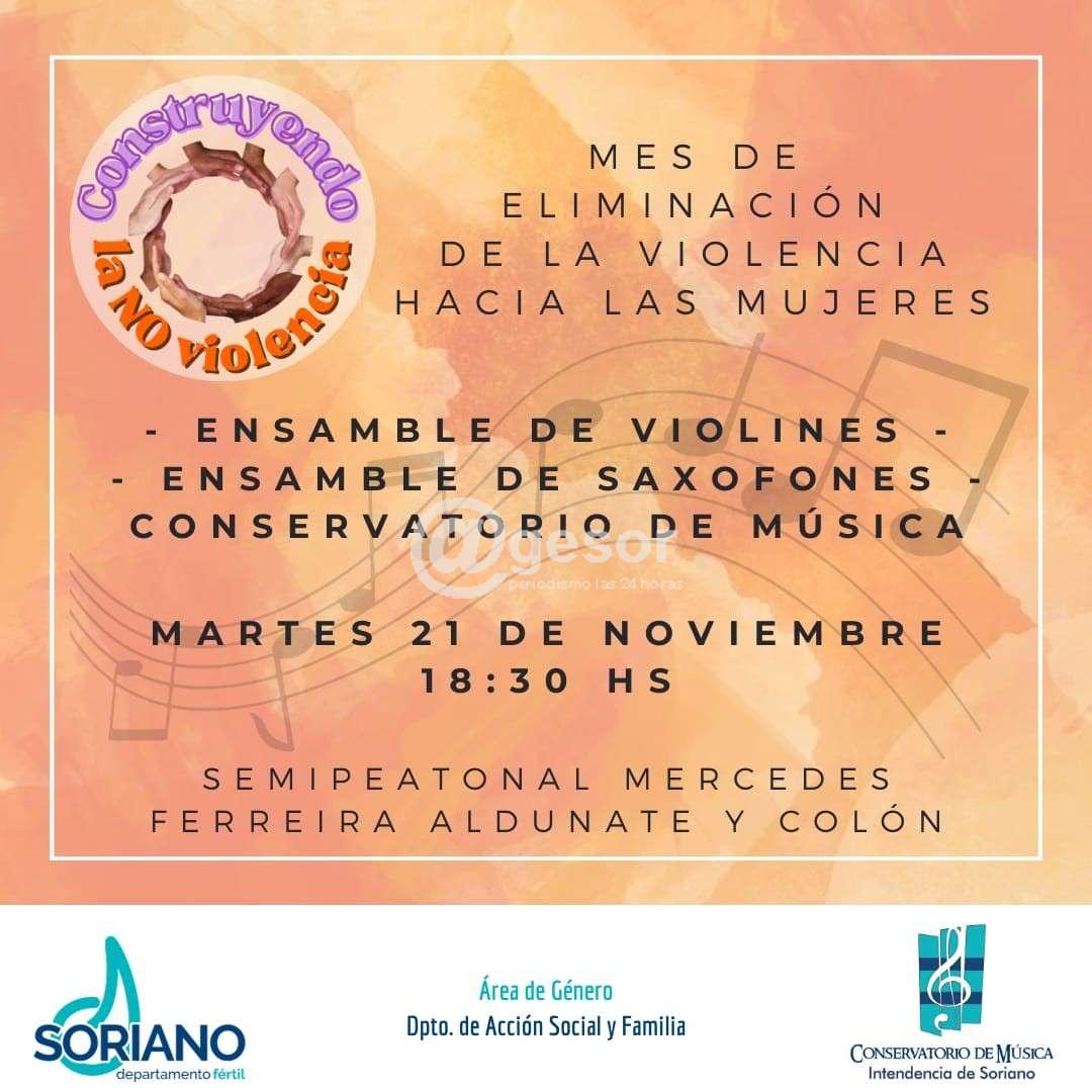 ¨Construyendo la no violencia¨ con actuación de ensamble de violines, ensamble de saxofones del Conservatorio de Música de la comuna.