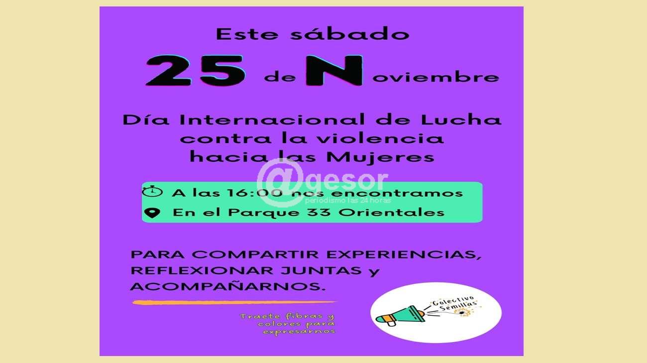 Colectivo Semilla de José Enrique Rodó organiza una jornada de encuentro y reflexión, en el Día Internacional de Lucha contra la violencia hacia las mujeres. Será el 25 de noviembre próximo, a las 16 horas, en el Parque 33 Orientales. Se compartirán experiencias"para reflexionar juntas y acompañarnos" expresa la invitación.