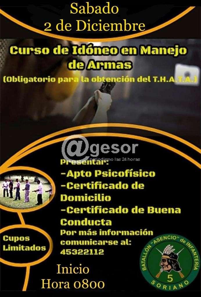 Este sábado 2 de diciembre en Batallón Asencio de Infantería Nº 5 a las 8.00 horas, con cupos limitados, estará desarrollándose curso de idóneo en manejo de armas, obligatorio para a obtención del T.H.A.T.A.