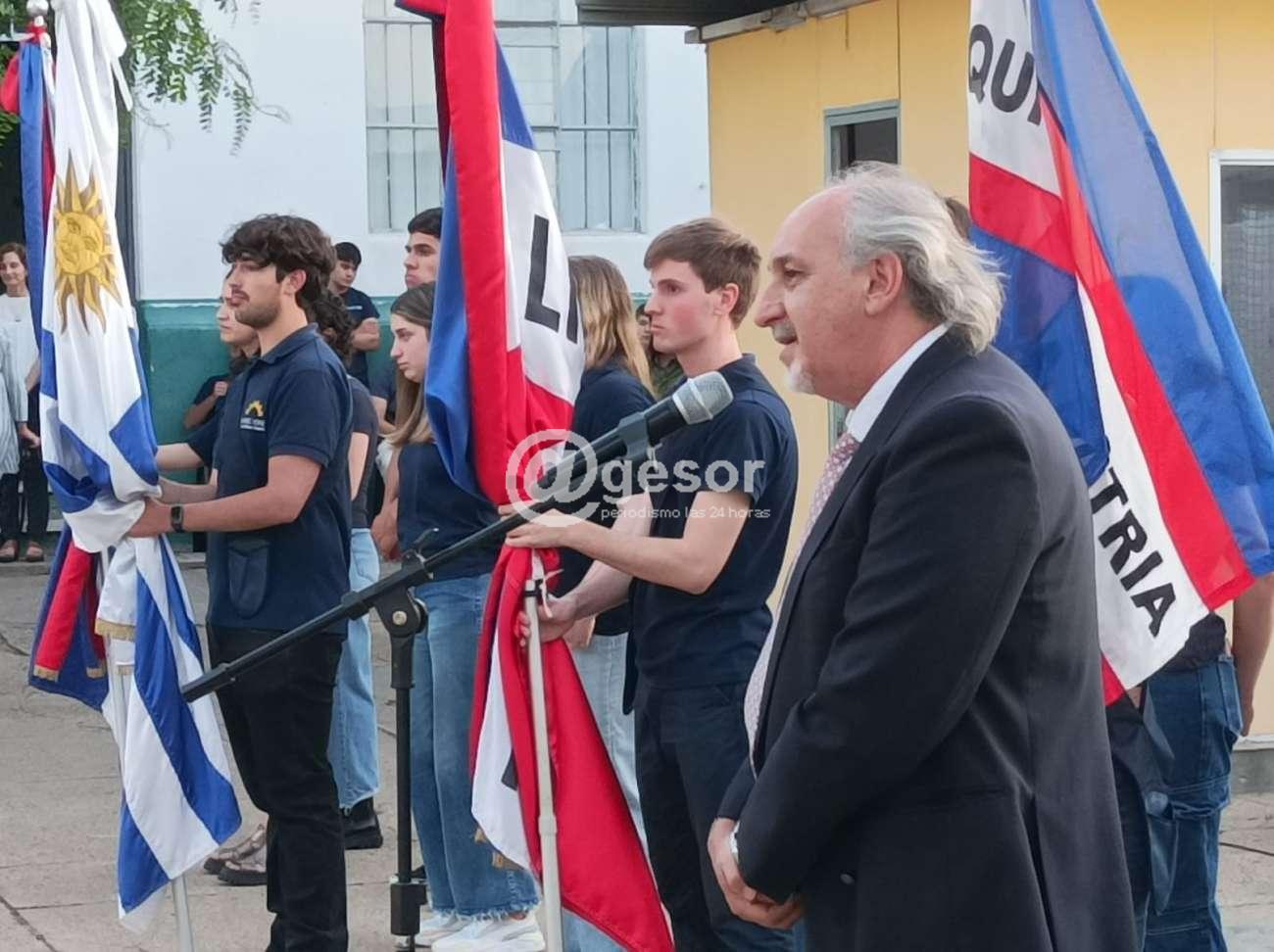 Tras la entonación del Himno Nacional, hizo uso de la palabra el Director de la Escuela Gerardo Borggio que en líneas generales hizo referencia a lo manifestado en cuando a lo puntual de la escuela a lo expresado a @gesor en la entrevista que publicamos por separado, destacando "a todos los que nos ayudan a llevar adelante esta gran institución, que es muy grande, compleja de organizar, y que es la institución más grande de la región, eso nos enorgullece, de saber que en Mercedes tenemos la institución más grande de toda la región que comprende Soriano, Río Negro, Colonia y San José a nivel UTU. Tenemos el orgullo que no nos quita nadie de estar en esa posición".