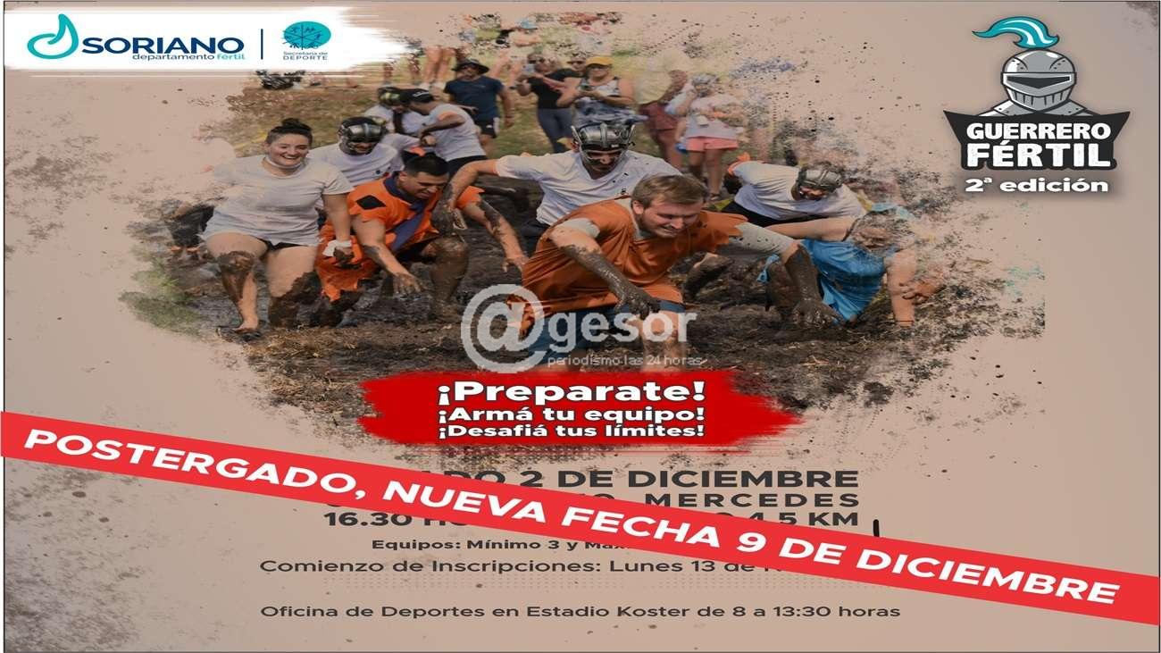 La Secretaría de Deportes y Recreación de la Intendencia de Soriano comunica que el evento “GUERRERO FERTIL”, a realizarse el sábado 2 de diciembre se posterga debido a la creciente de río Negro, que afecta la zona donde se iba a realizar esta actividad.