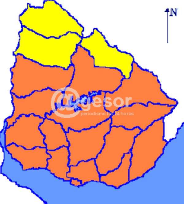 La Dirección Nacional de Meteorología emitió en las últimas horas una advertencia de color naranja, la que afecta los departamentos de Paysandú, Río Negro, Soriano, Colonia, San José, Flores, Durazno, Florida, Canelones, Montevideo, Maldonado, Lavalleja, Treinta y Tres, Cerro Largo, Tacuarembó y Rocha.