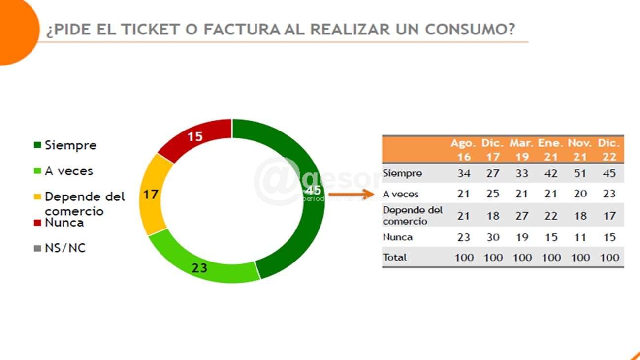 A su vez, un 87 por ciento de los encuestados cree que es incorrecto que no se le entregue el ticket o factura cuando compra un producto o servicio.